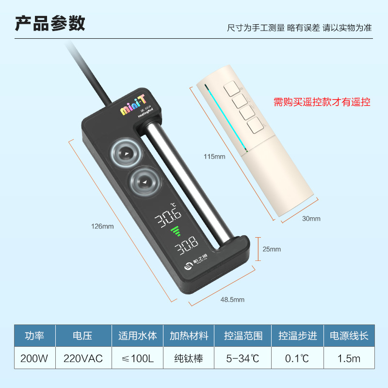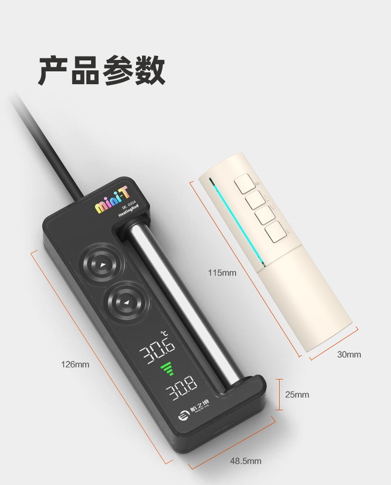 • Hangzhijinger mini-T 가열 막대 200W 버튼 제어 + 원격 제어