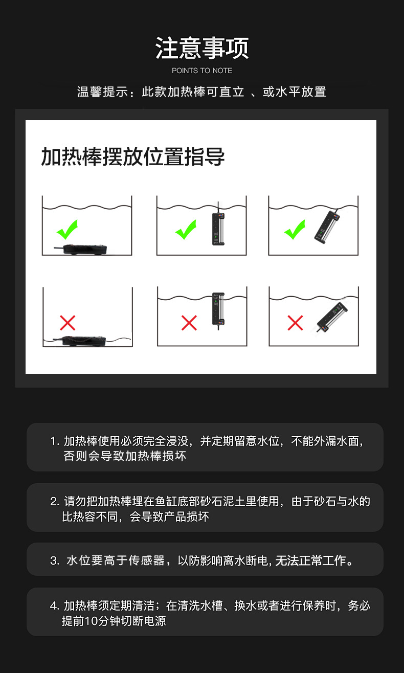 • Hangzhijinger mini-T 가열 막대 200W 버튼 조절