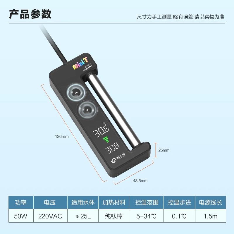 • Hangzhijing mini-T 가열 막대 50W 버튼 조절