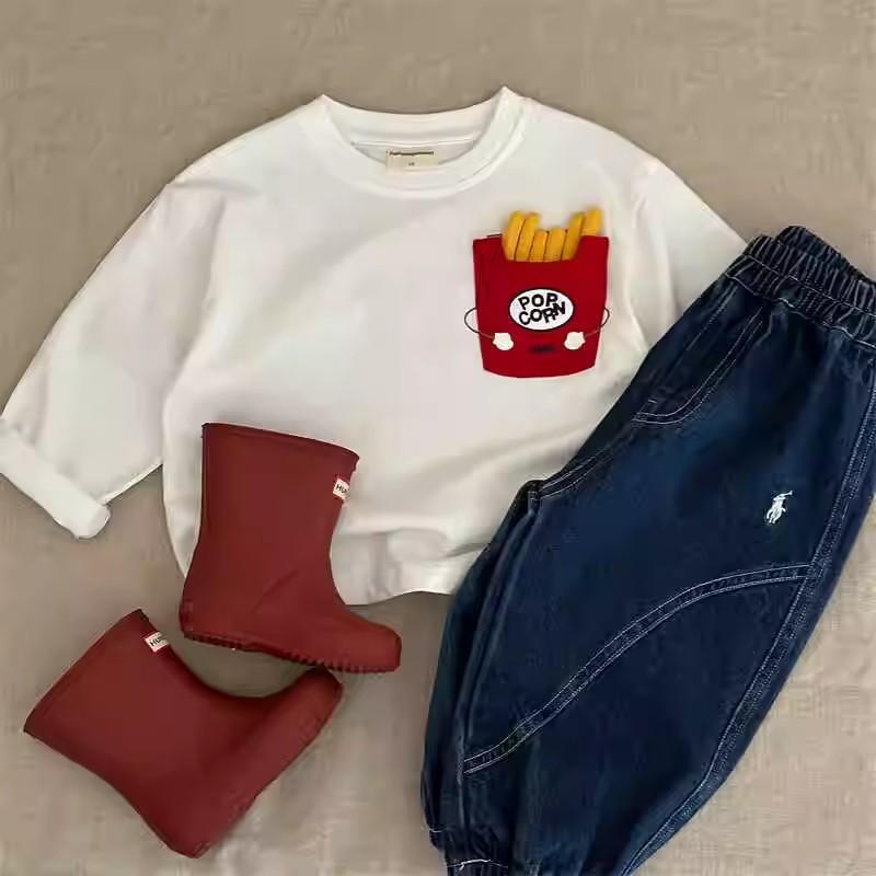 2025 가을 소년과 소녀 한국 스타일 캐주얼 어린이 긴팔 티셔츠 아기의 얇은 스웨터 중 큰 어린이베이스 셔츠스토어 가기