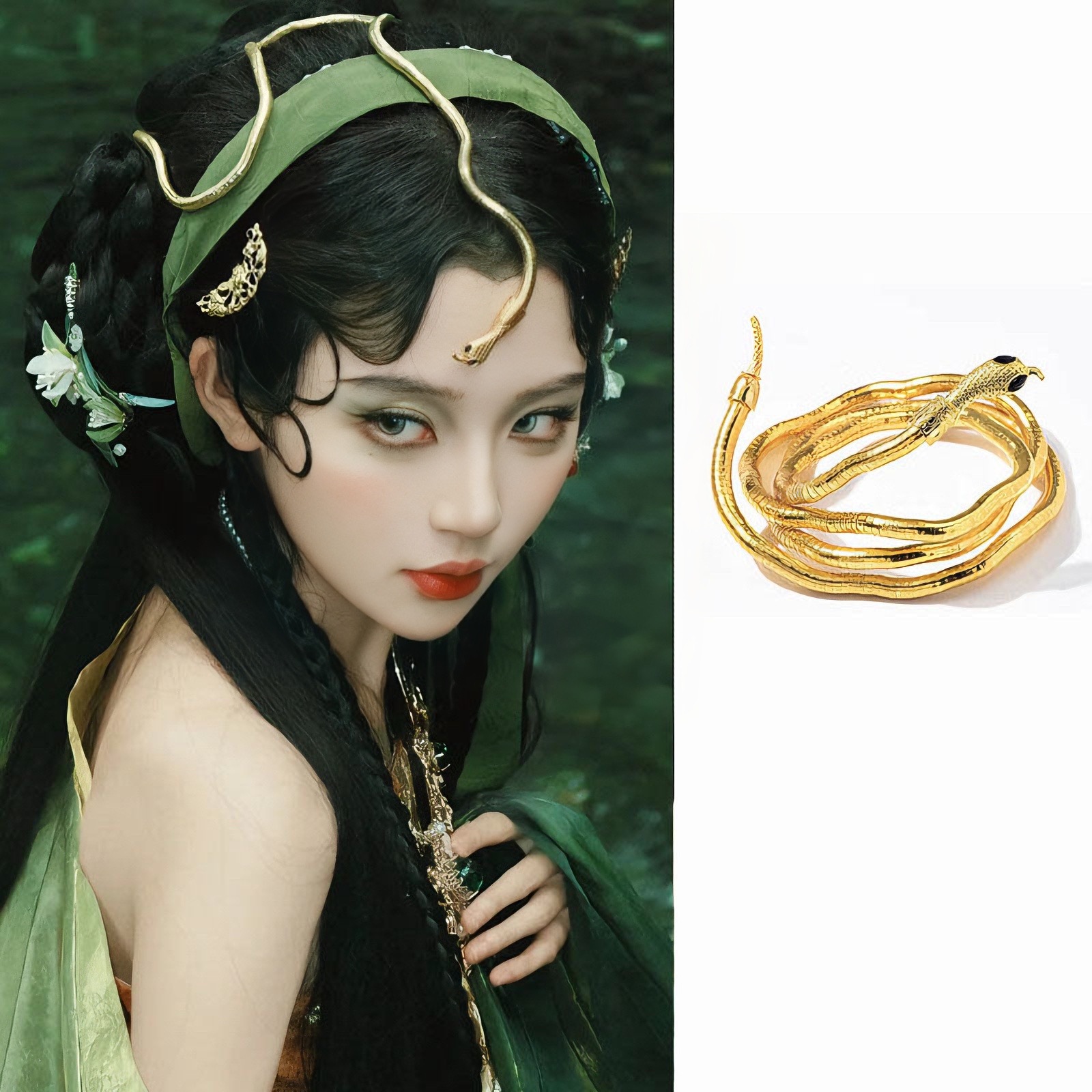 골동품 뱀 헤어 액세서리 Xiaoqing 헤드웨어 조정 가능한 목걸이 녹색 뱀 흰색 뱀 여자 친구 사진 헤드 웨어 초상화 액세서리 여성스토어 가기