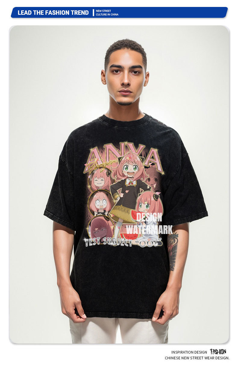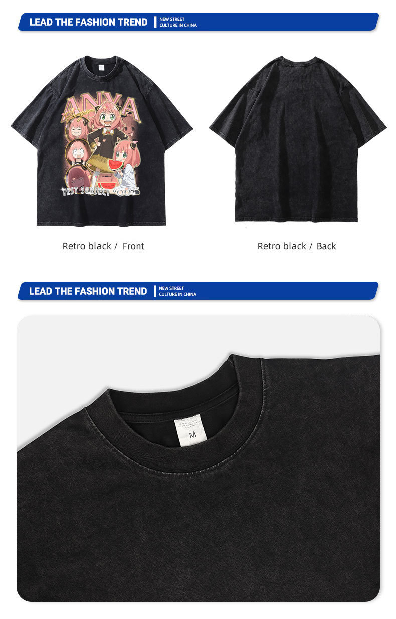 애니메이션 스파이 Fanjia 티셔츠 오래 된 티셔츠 세컨더리 빈티지 귀여운 애니 이어 반팔 여름 원피스스토어 가기