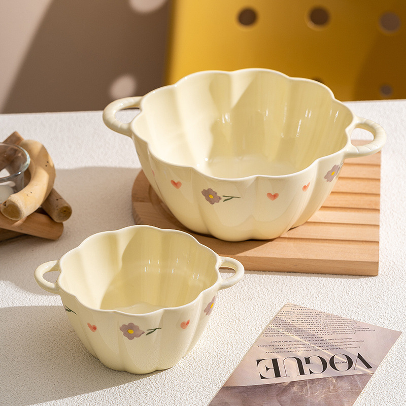 크림 스타일 바이나럴 호박 그릇 대용량 국수 달팽이 사자 분말 세라믹 가정용 식기 높은 색상 가치 인터넷 인기스토어 가기