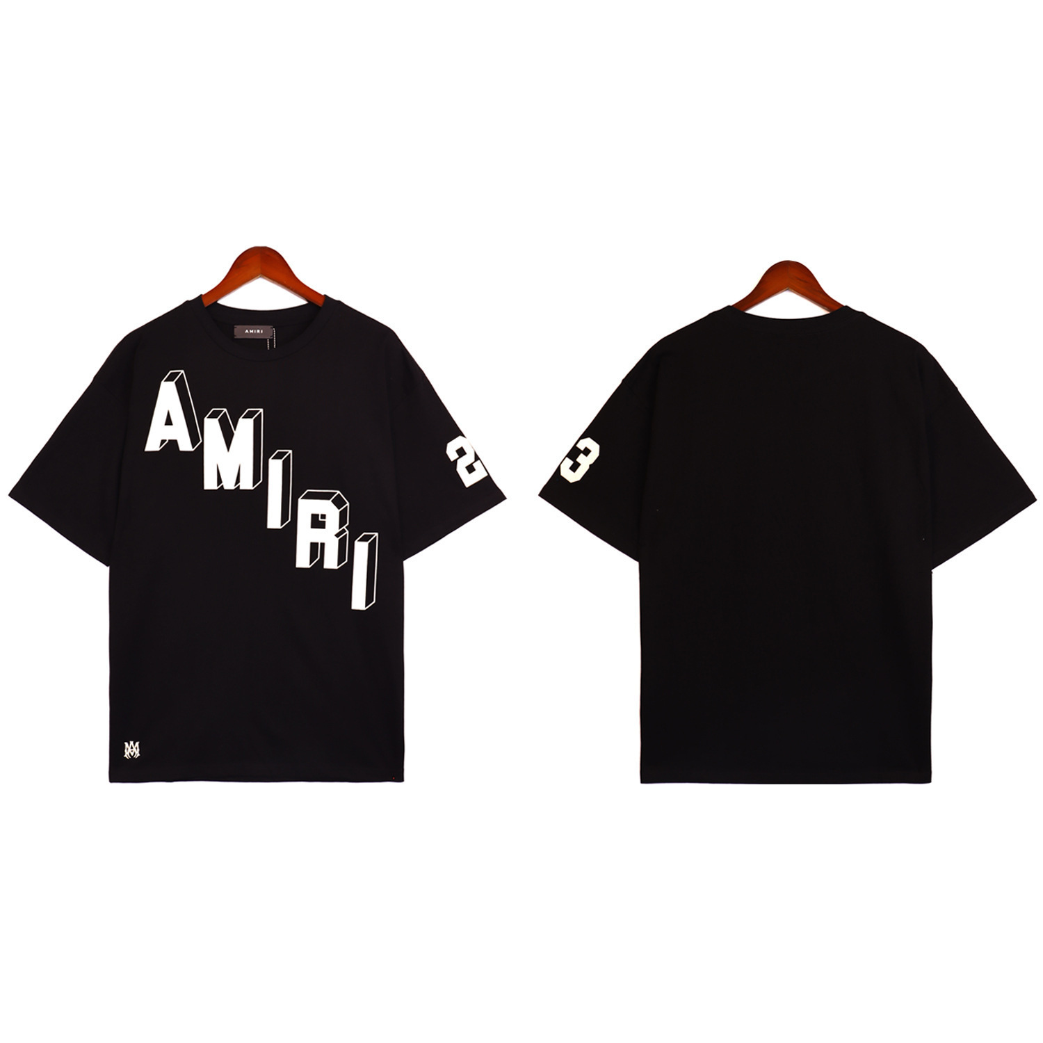2024 년 여름 새로운 AMIRI 3 차원 블록 로고 편지 인쇄 짧은 소매 티셔츠 남성과 여성 1 개 도매 t스토어 가기