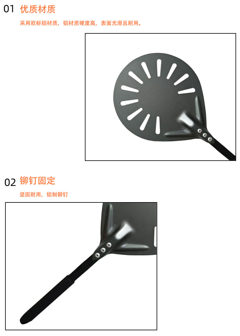 Jiaahang 핫 세일 알루미늄 합금 8 인치 피자 삽 듀랄 펀칭 피자 전송 삽 크로스 국경 피자 도구
