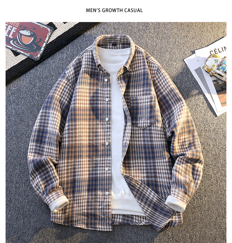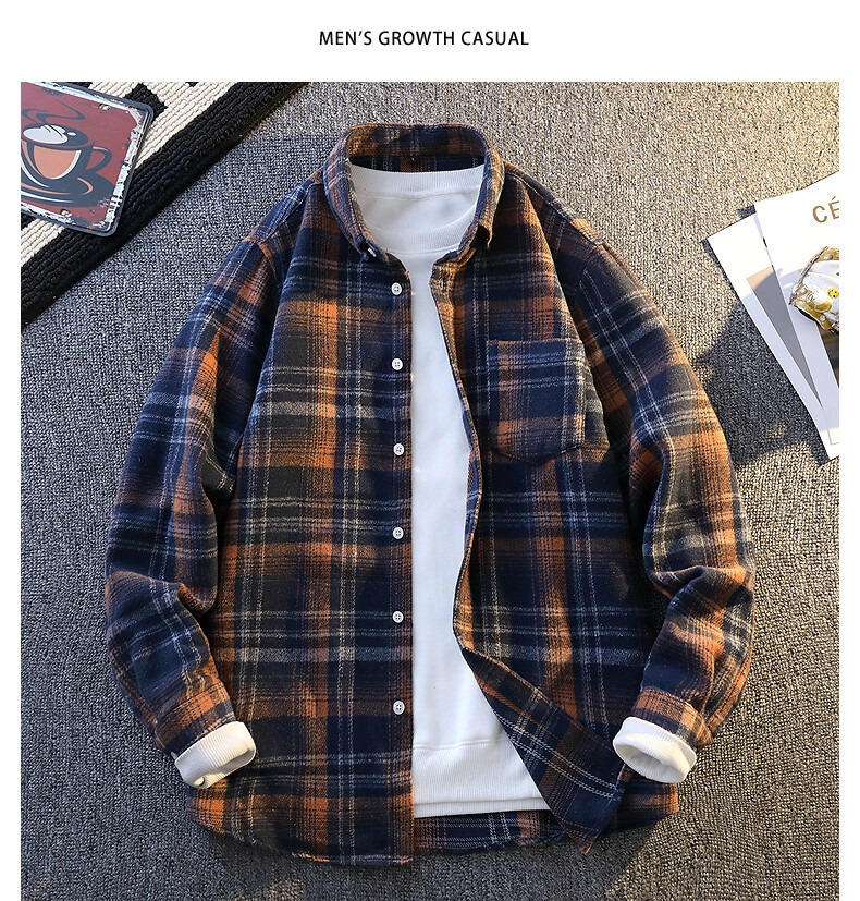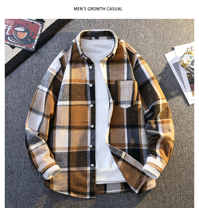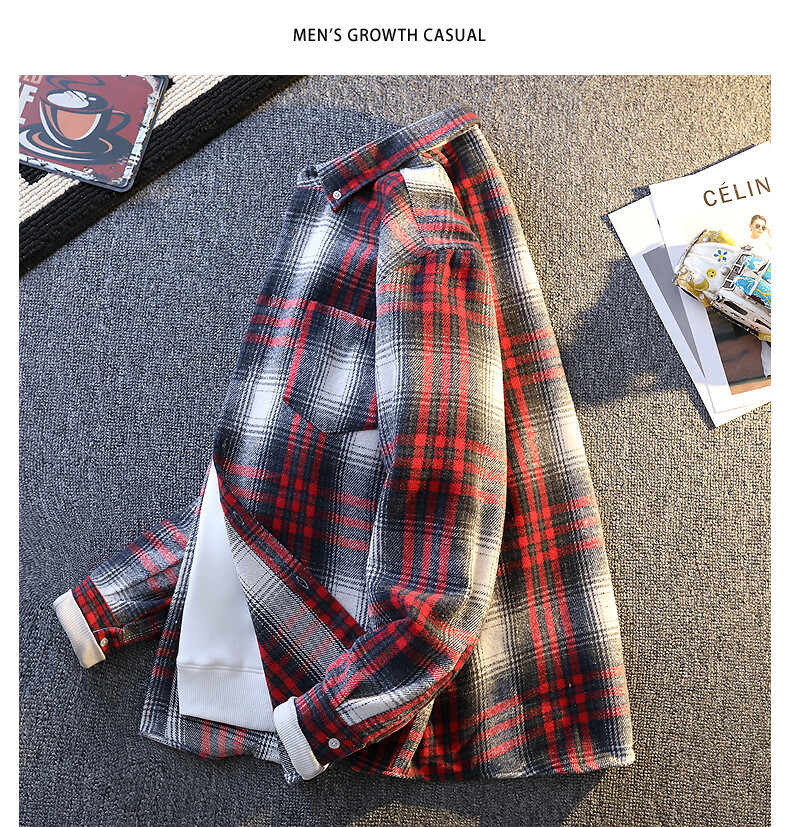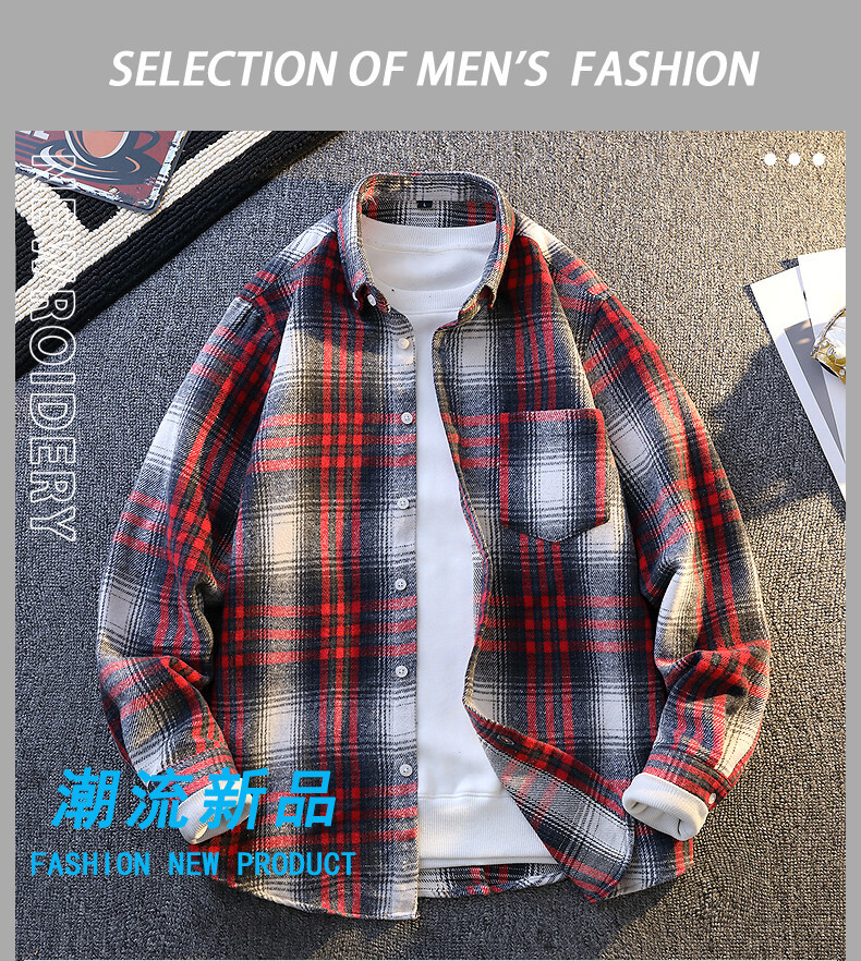 국경 간 대외 무역 남자 봄 가을 겨울 격자 무늬 플러스 사이즈 긴팔 셔츠 캐주얼 재킷 플란넬 셔츠 남성 의류