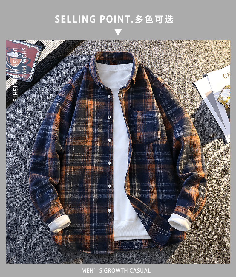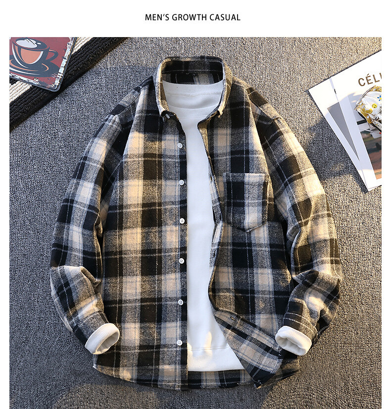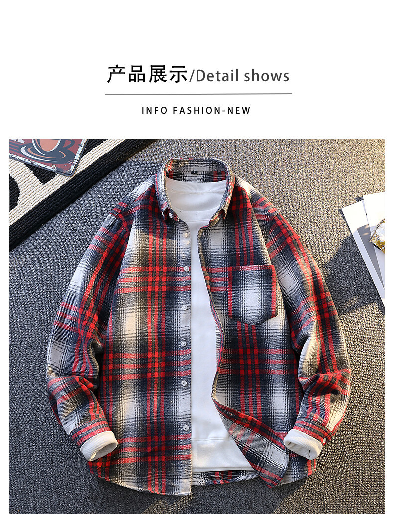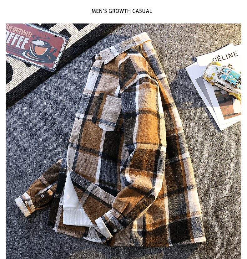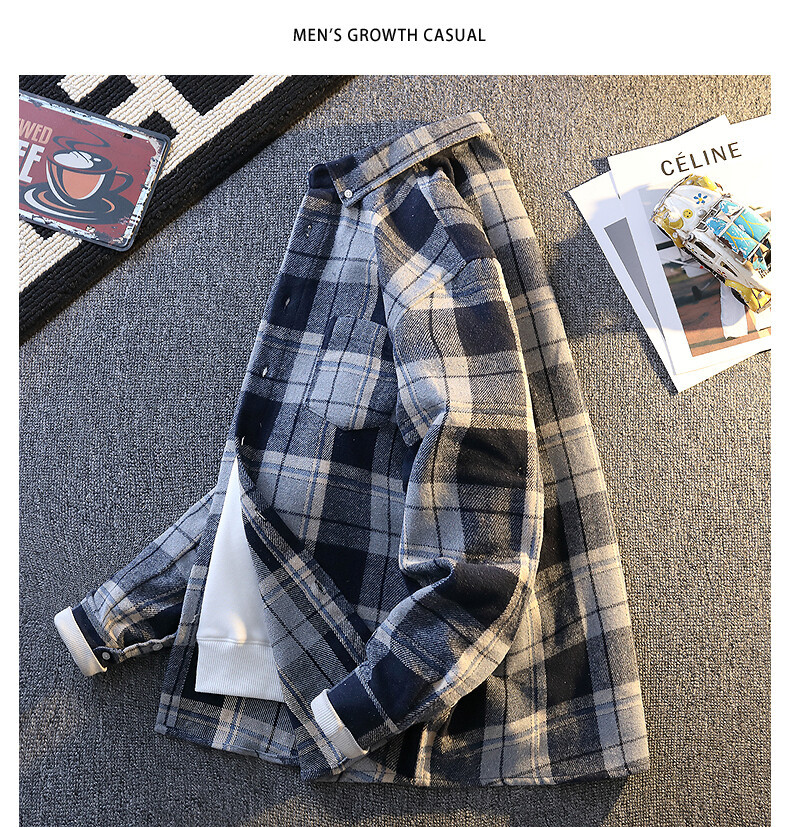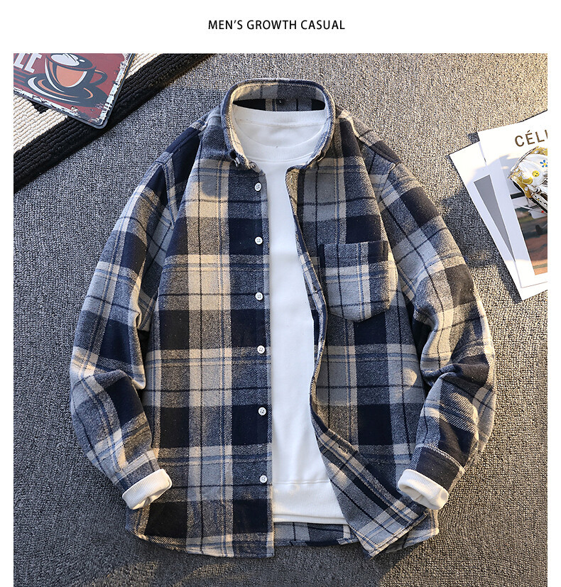 국경 간 대외 무역 남자 봄 가을 겨울 격자 무늬 플러스 사이즈 긴팔 셔츠 캐주얼 재킷 플란넬 셔츠 남성 의류스토어 가기