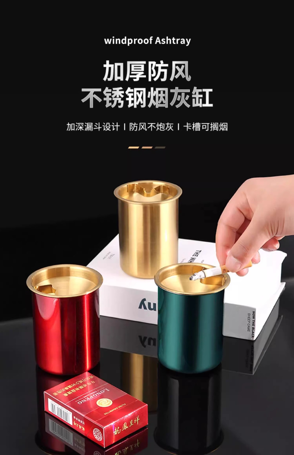 도매 창조적 인 성격 스테인레스 스틸 재떨이 방풍 가정용 거실 다이닝 룸 대형 재떨이 라이트 럭셔리스토어 가기