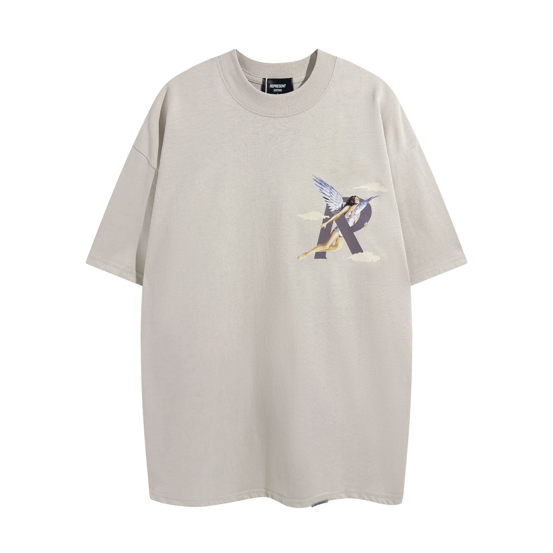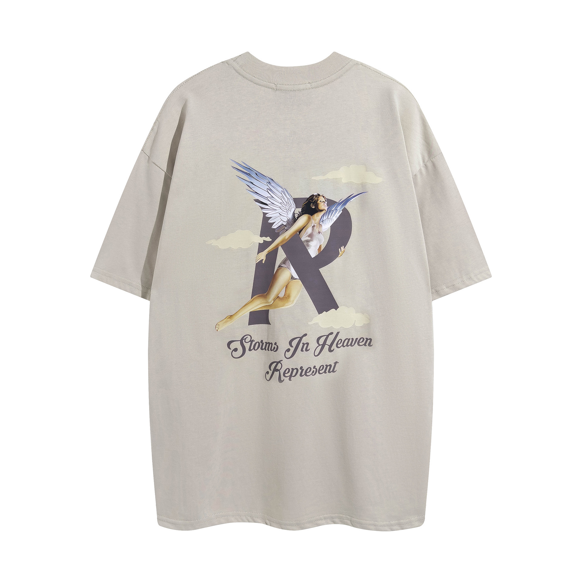 미국 틈새 선물 반팔 티 하이 스트리트 FOG 작은 목선 엔젤 프린트 루즈 트렌디 티셔츠스토어 가기