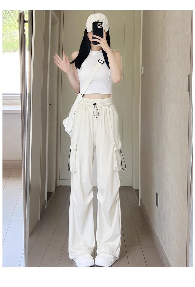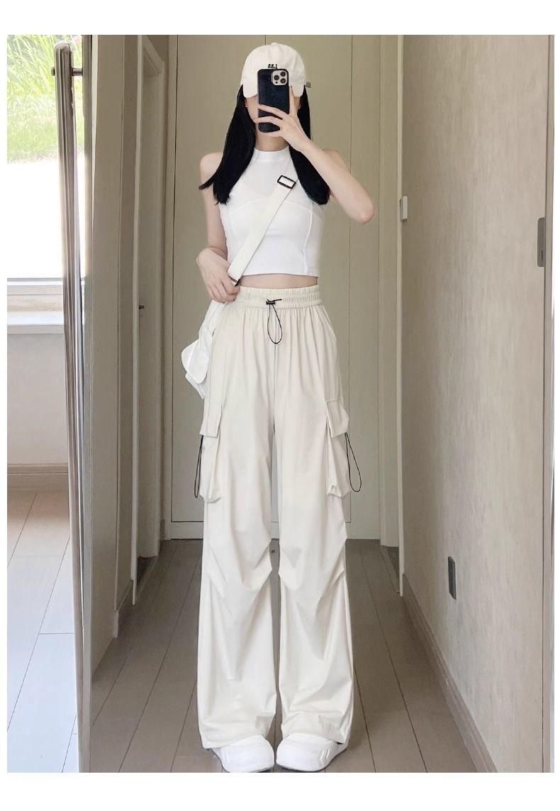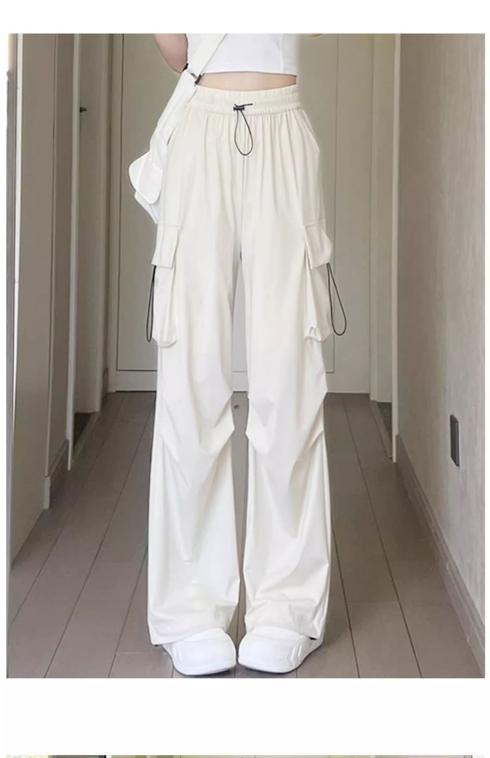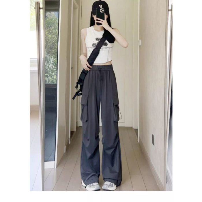 아메리칸 레트로 그레이 크록 바지 여자 봄과 여름 올 매치 슬림 핏 느슨한 다리 캐주얼 등산 와이드 레그 스포츠 바지