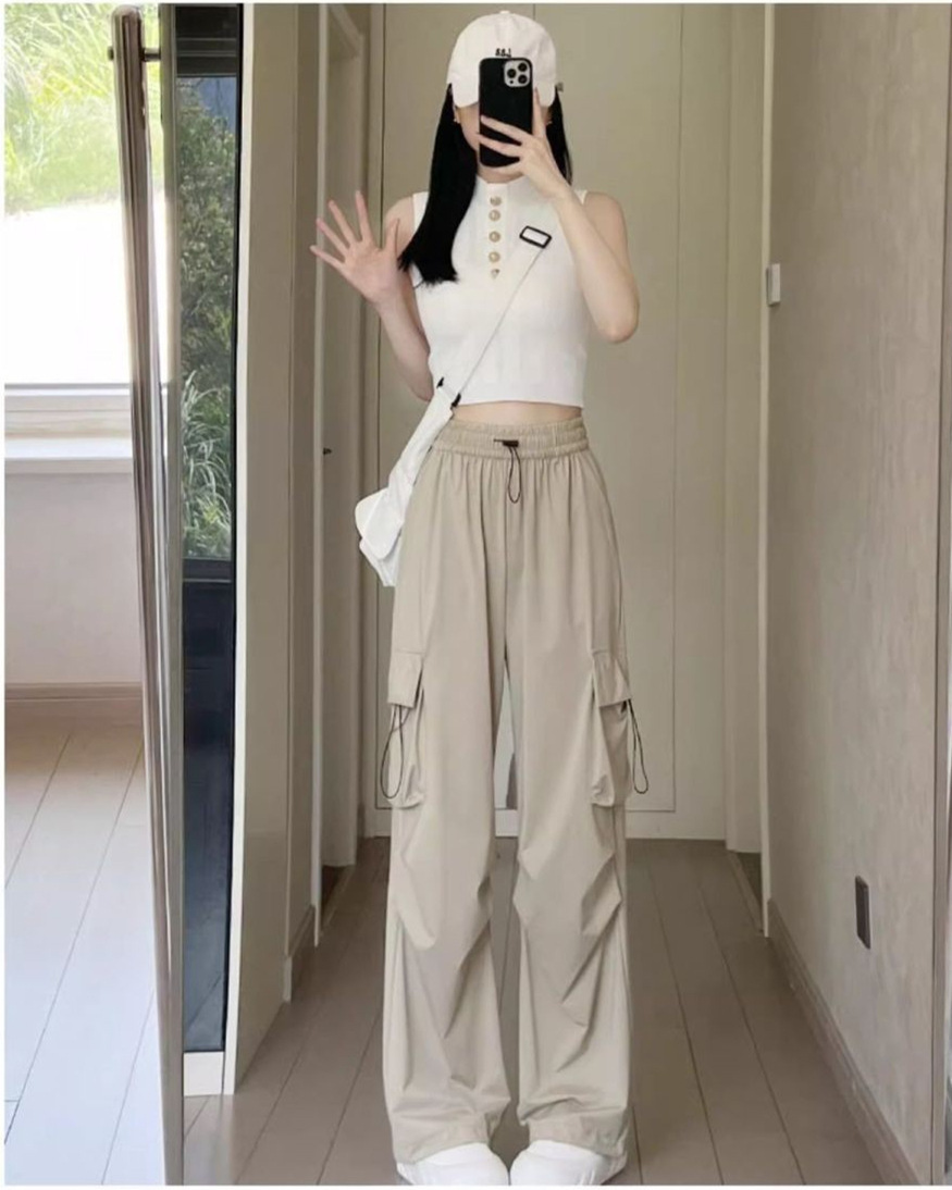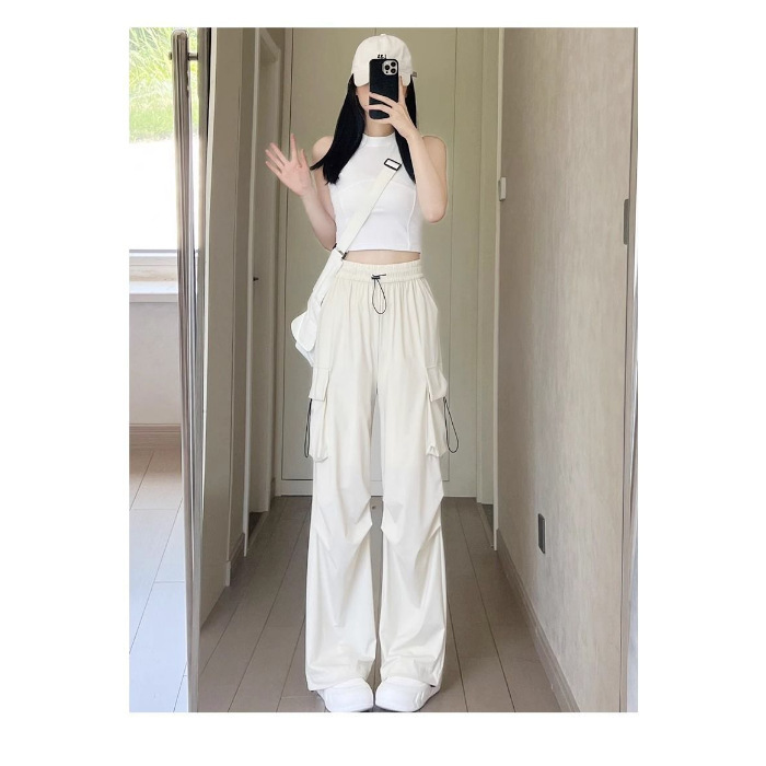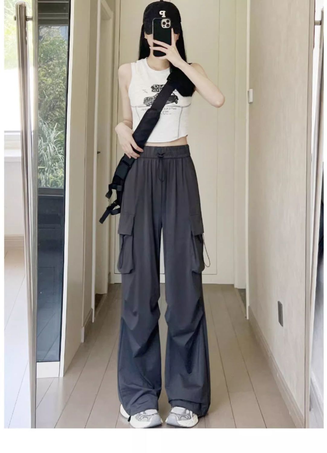 아메리칸 레트로 그레이 크록 바지 여자 봄과 여름 올 매치 슬림 핏 느슨한 다리 캐주얼 등산 와이드 레그 스포츠 바지스토어 가기