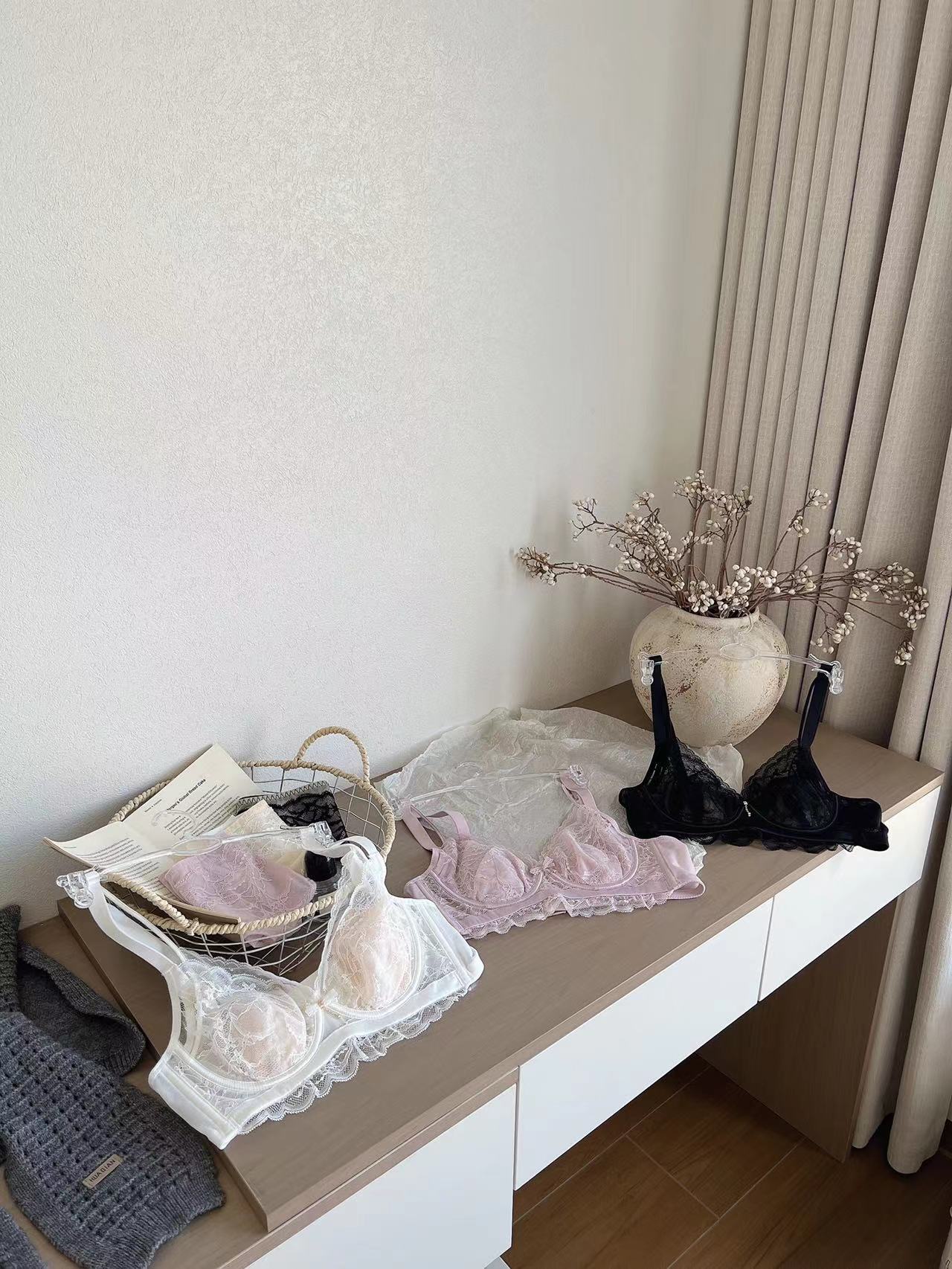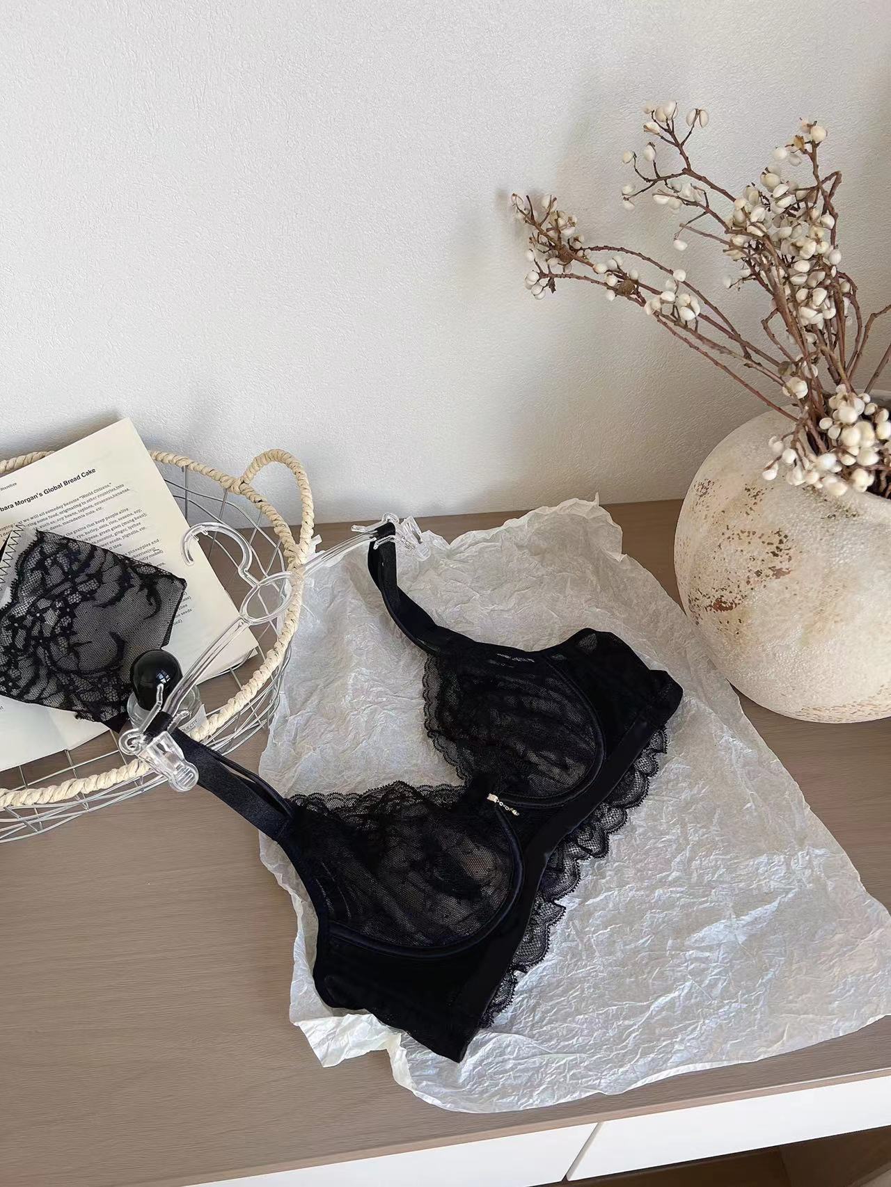 하이 엔드 뽕나무 실크 조절 가능한 속옷 얇은 토끼 귀 큰 가슴 작은 모임 파름 섹시한 레이스 브라스토어 가기