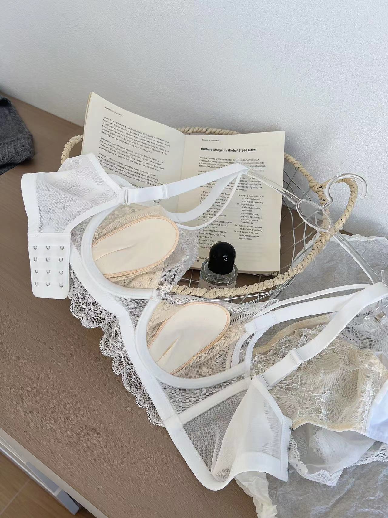 하이 엔드 뽕나무 실크 조절 가능한 속옷 얇은 토끼 귀 큰 가슴 작은 모임 파름 섹시한 레이스 브라
