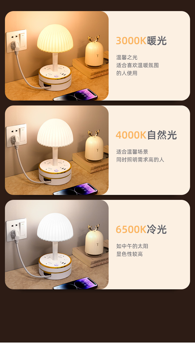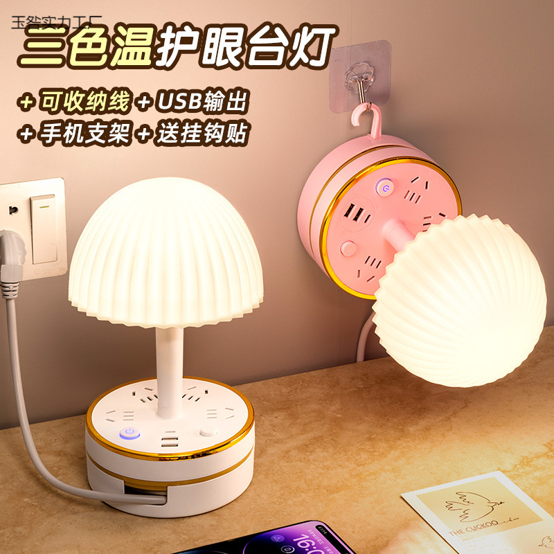 테이블 램프 소켓 통합 침대 옆 램프 LED 기숙사 침실 대학생 다기능 데스크탑 플러그스토어 가기