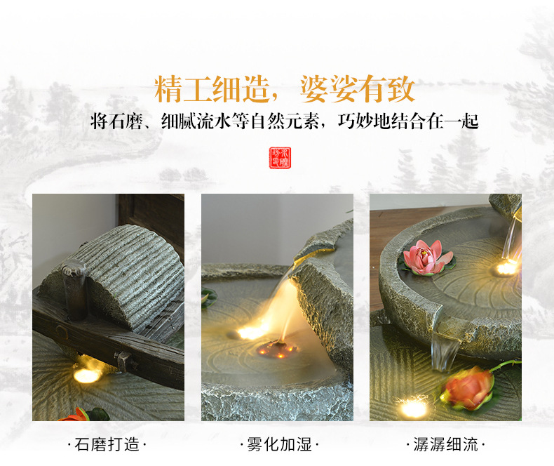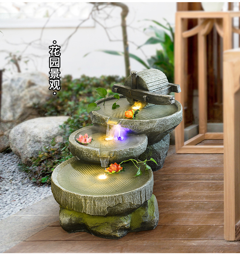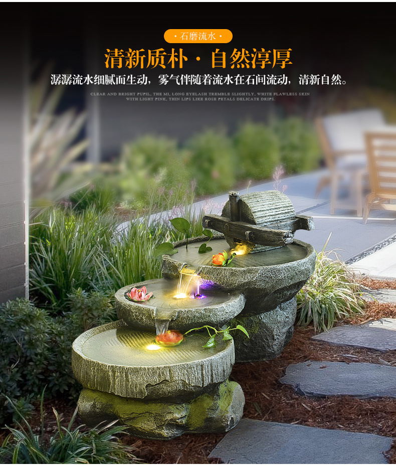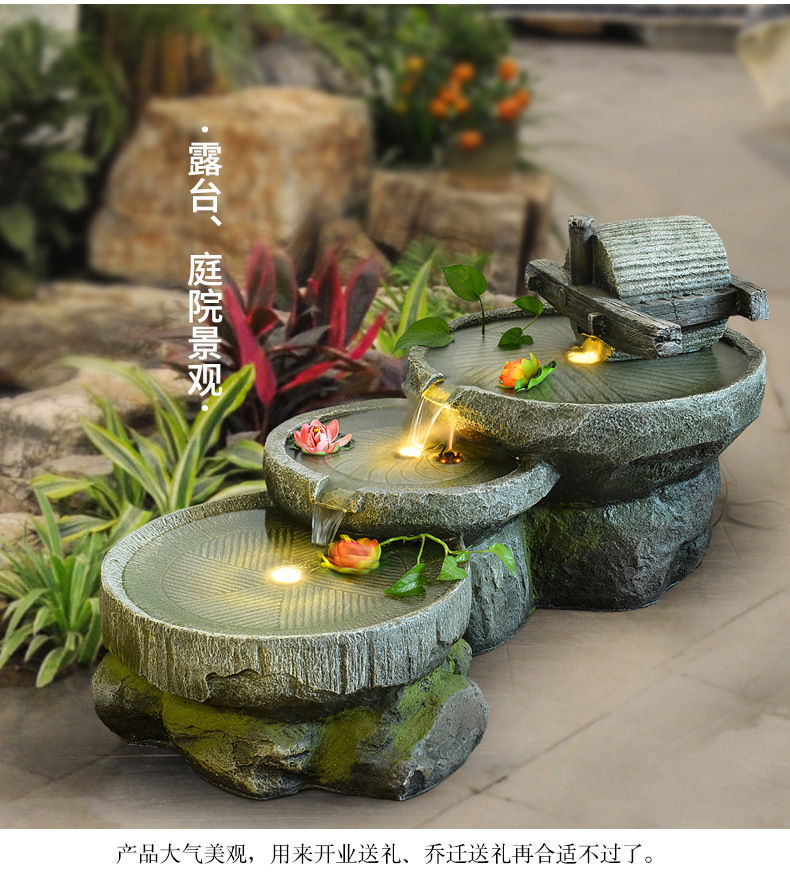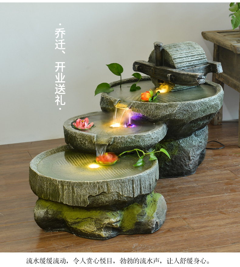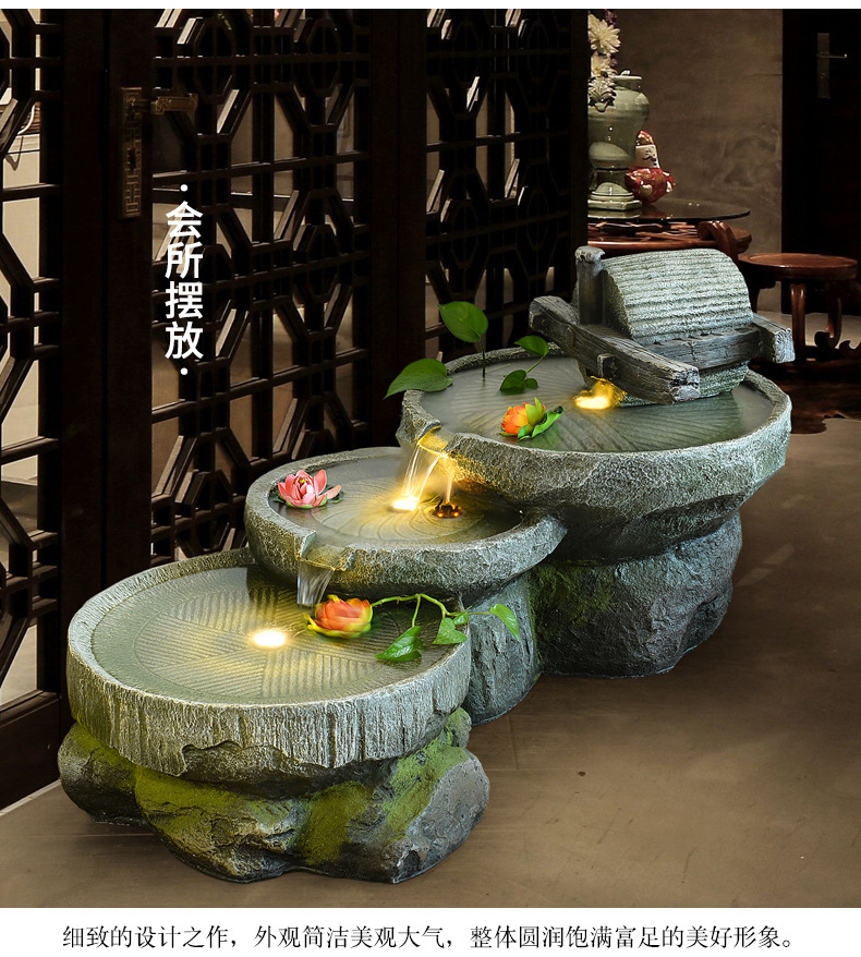 농촌 러닝 워터 스톤 밀 분수의 추억 실내 거실 가습기 안뜰 목가적 풍경 바닥 장식 장식품스토어 가기