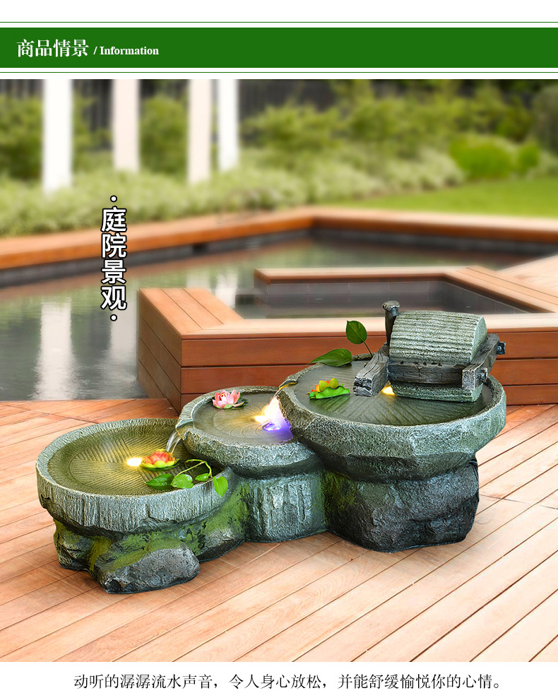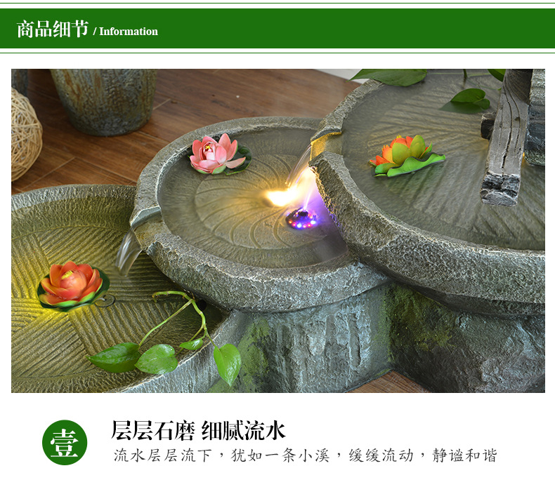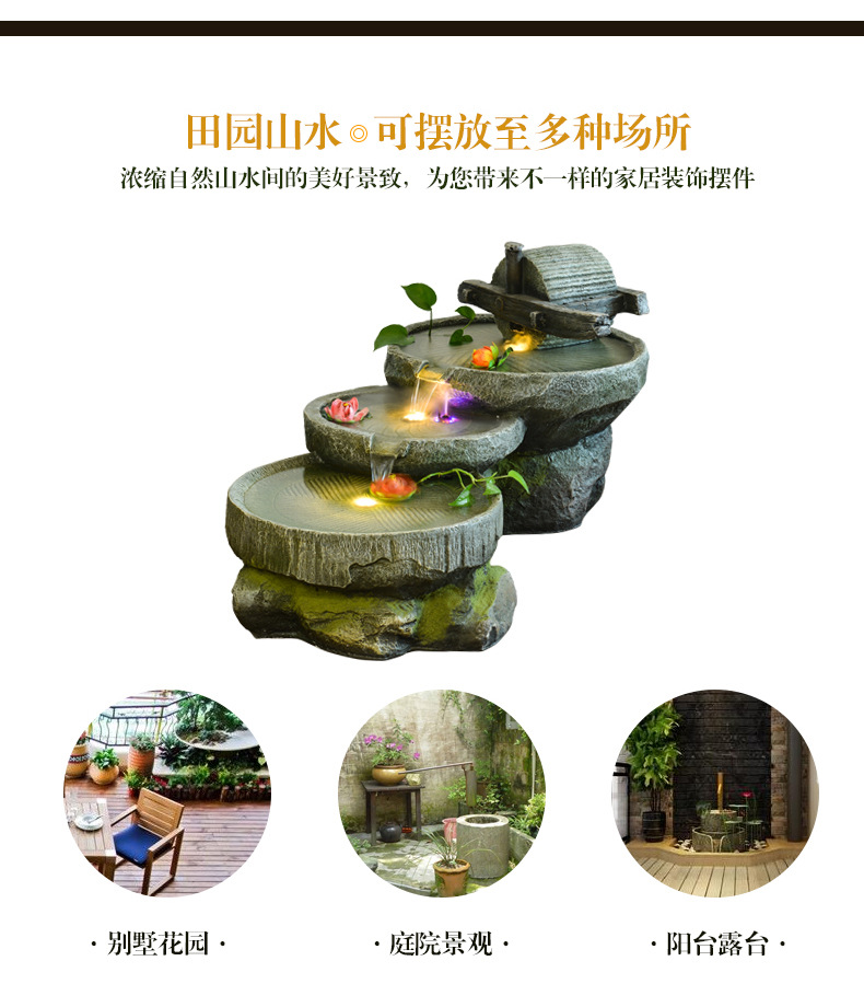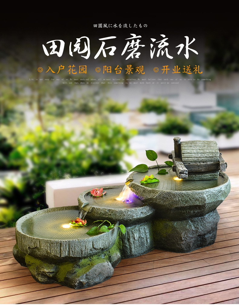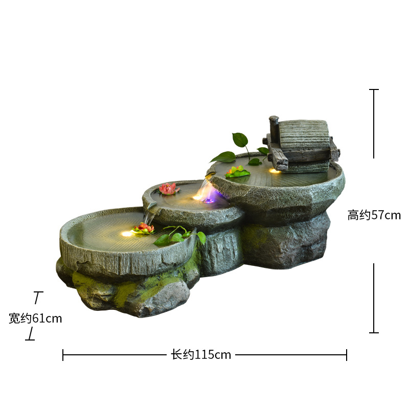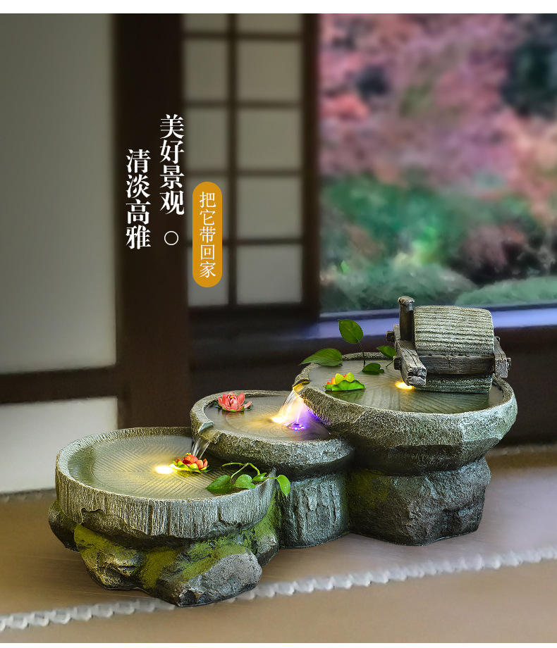 농촌 러닝 워터 스톤 밀 분수의 추억 실내 거실 가습기 안뜰 목가적 풍경 바닥 장식 장식품스토어 가기