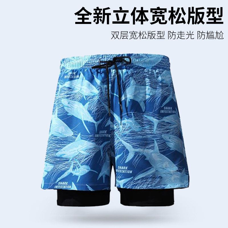 남자 온천 수영 트렁크 비치 트렁크 수영 느슨한 더블 레이어 안티 당혹감 빠른 건조 서핑 성인 남성 수영 트렁크 배치