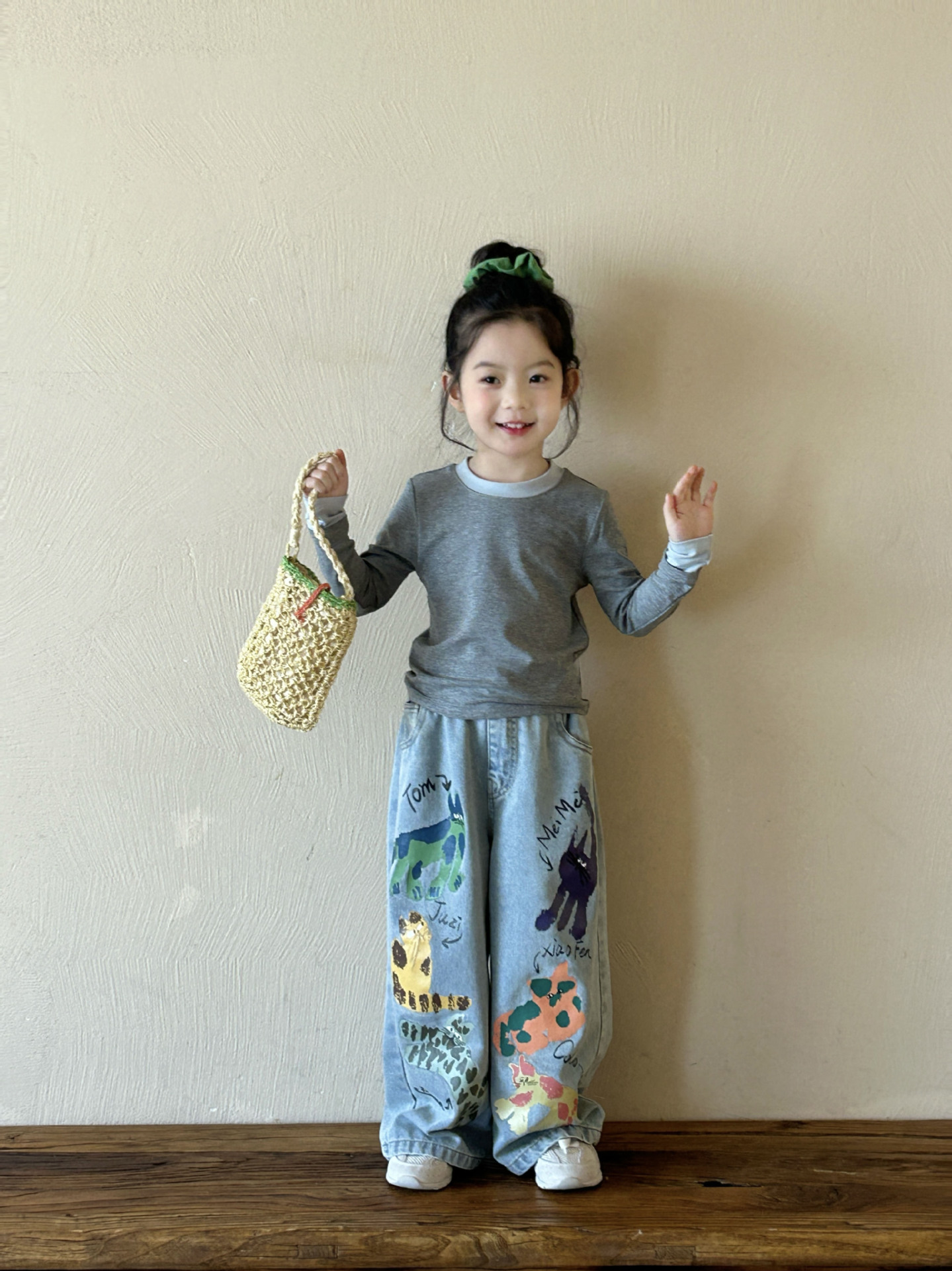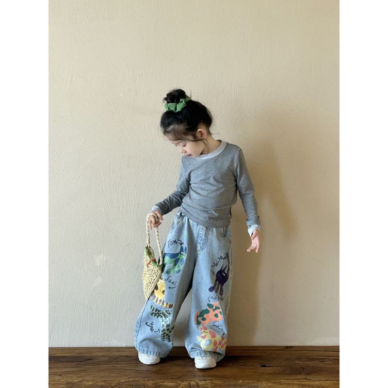 걸스 버밍 셔츠 2025 봄 중소 어린이 가짜 투피스 긴팔 셔츠 아동용 티셔츠의 새 한국판.스토어 가기