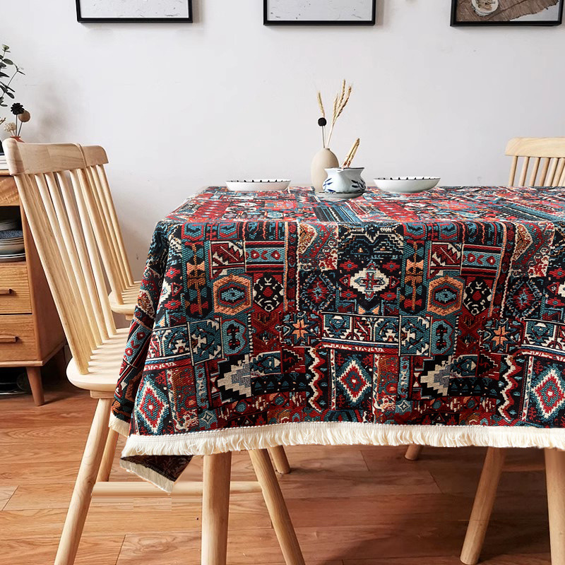 C 보헤미안 식탁보 면 및 리넨 레트로 모로코 식탁보 미국 스타일 피크닉 식탁보 바 커피 테이블