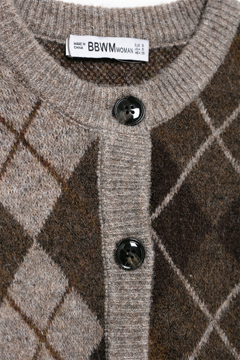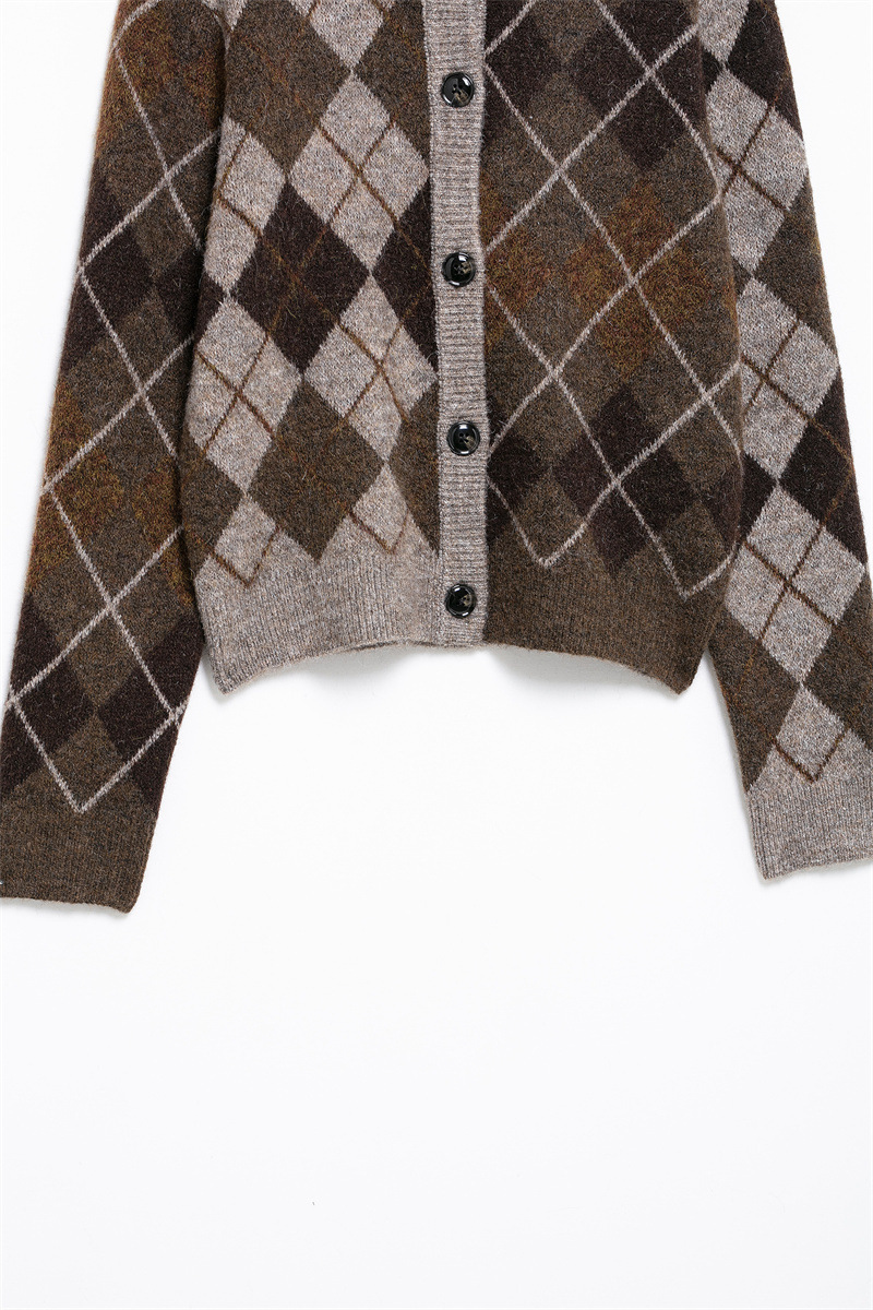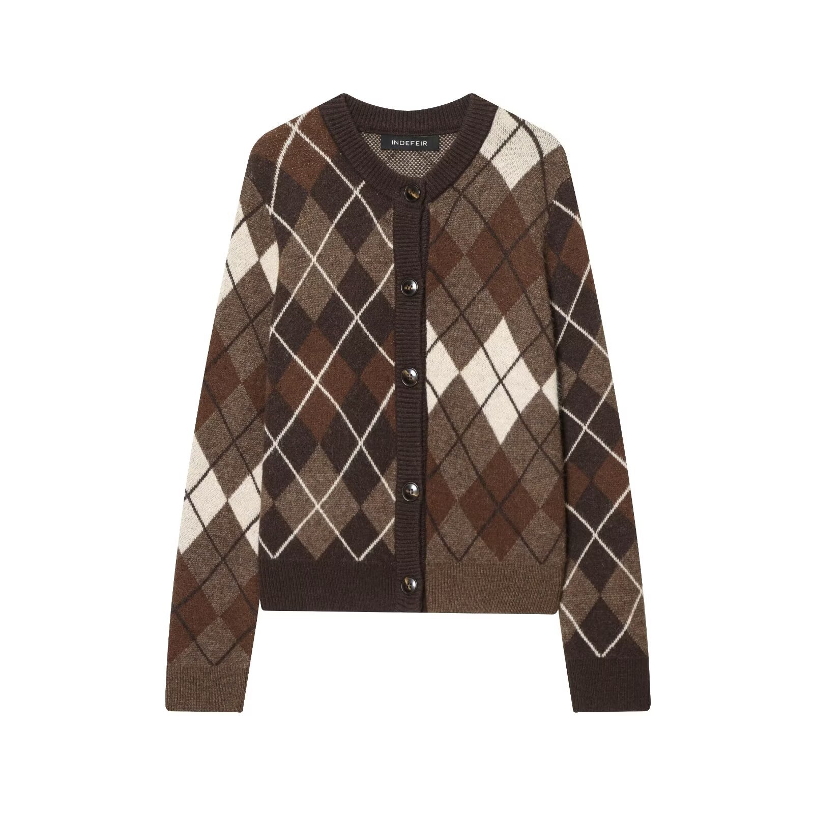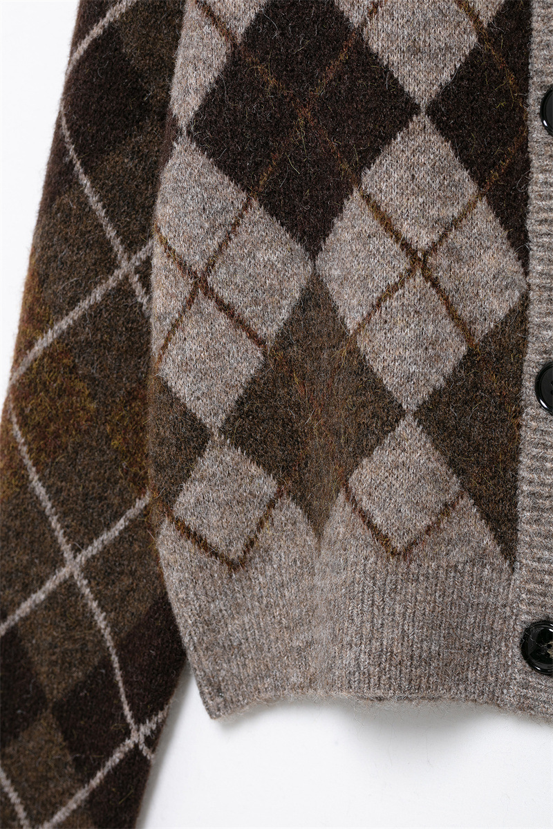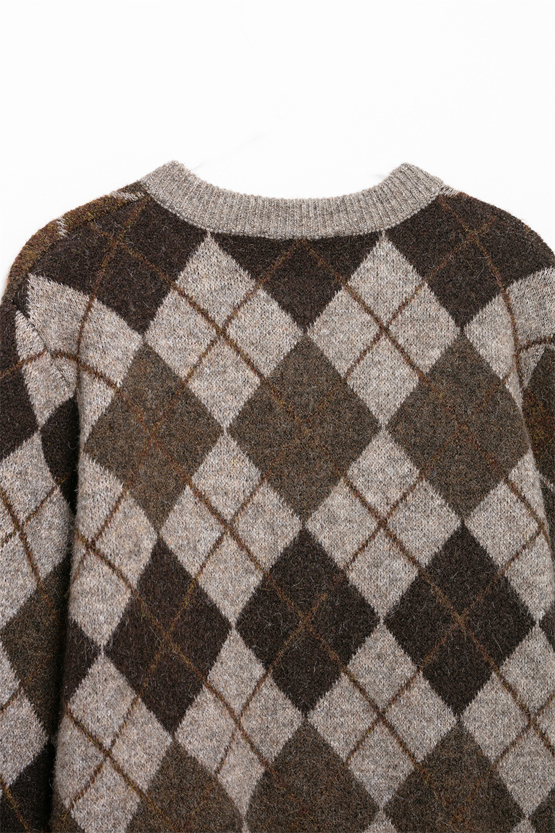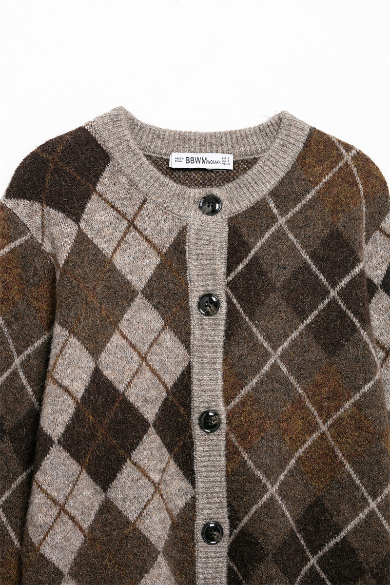 대외 무역 2024 유럽과 미국 겨울 새로운 기질 라운드 넥 긴 소매 다이아몬드 체크 싱글 브레스트 스웨터 여성 2756124스토어 가기