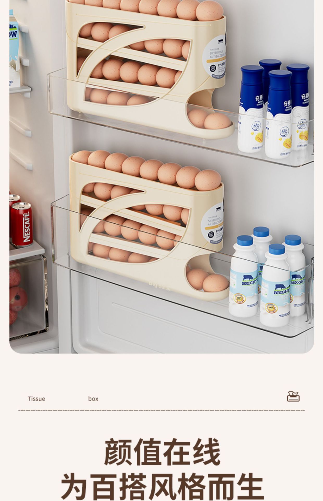 • 크림색⭐1팩 [계란 30개 정도 담을 수 있음] 자동 보충