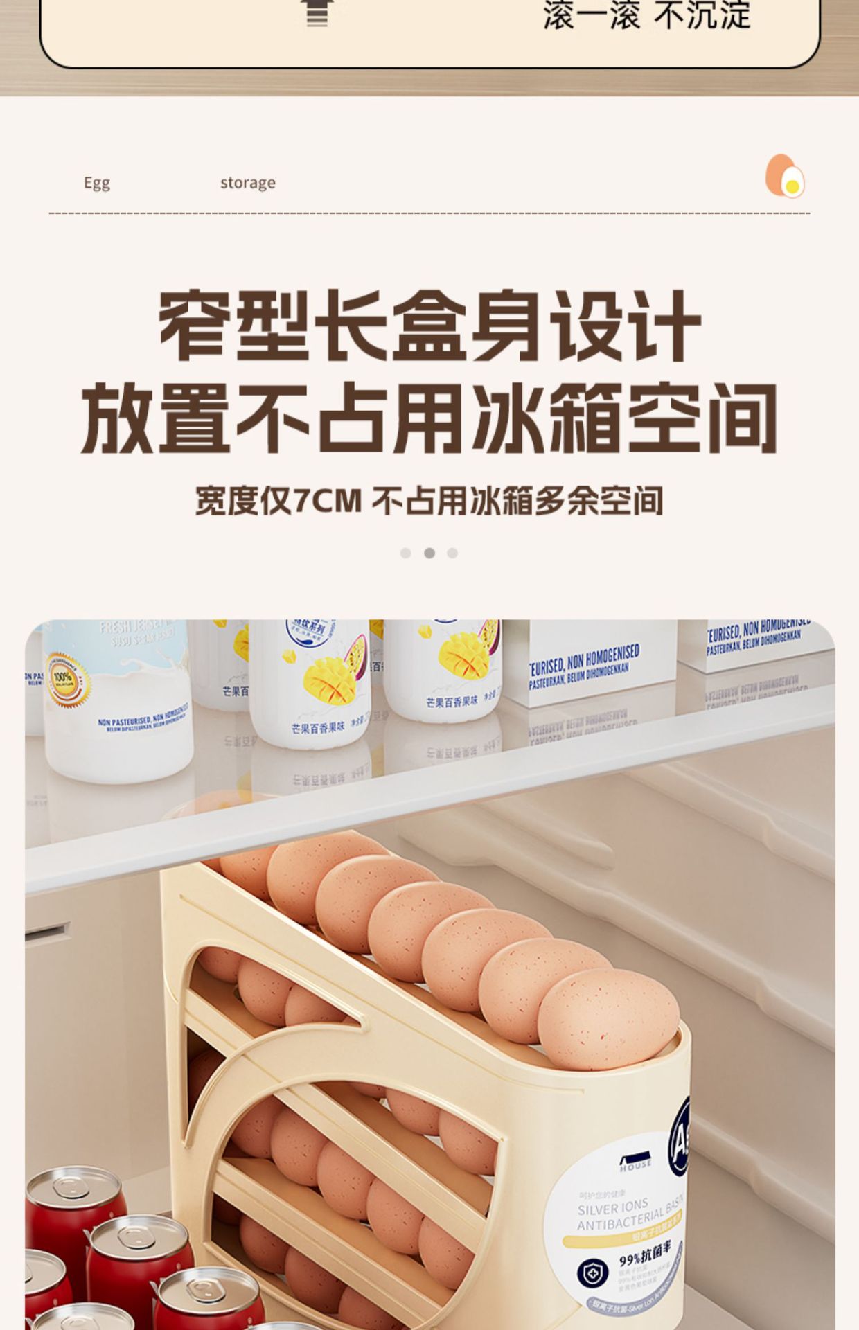 롤링 슬라이드 타입 계란 저장 상자 음식 등급 냉장고 사이드 도어 계란 상자 신선한 보관 상자 마무리