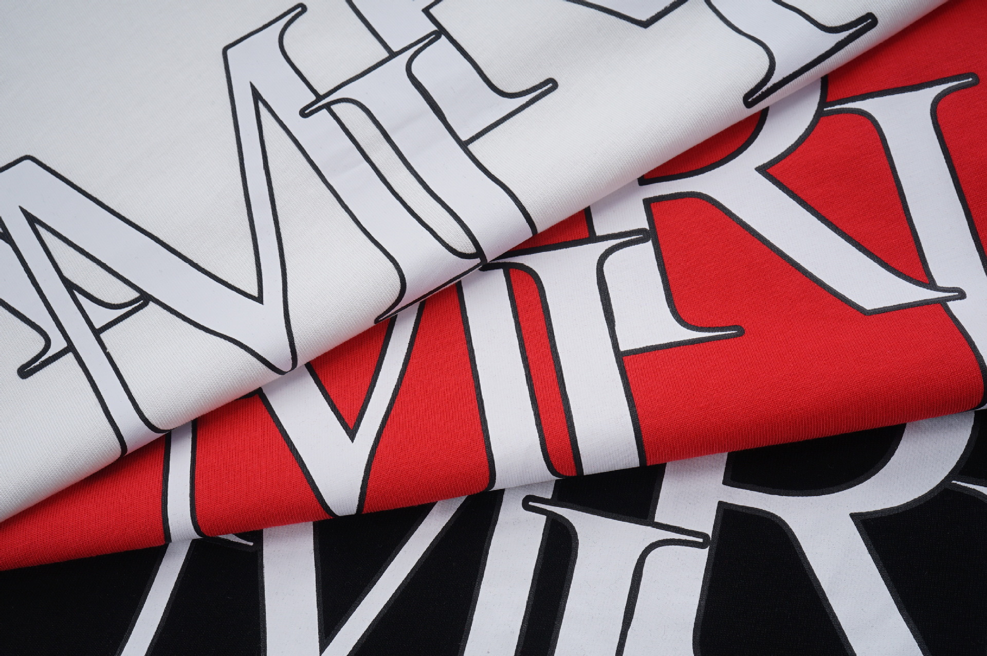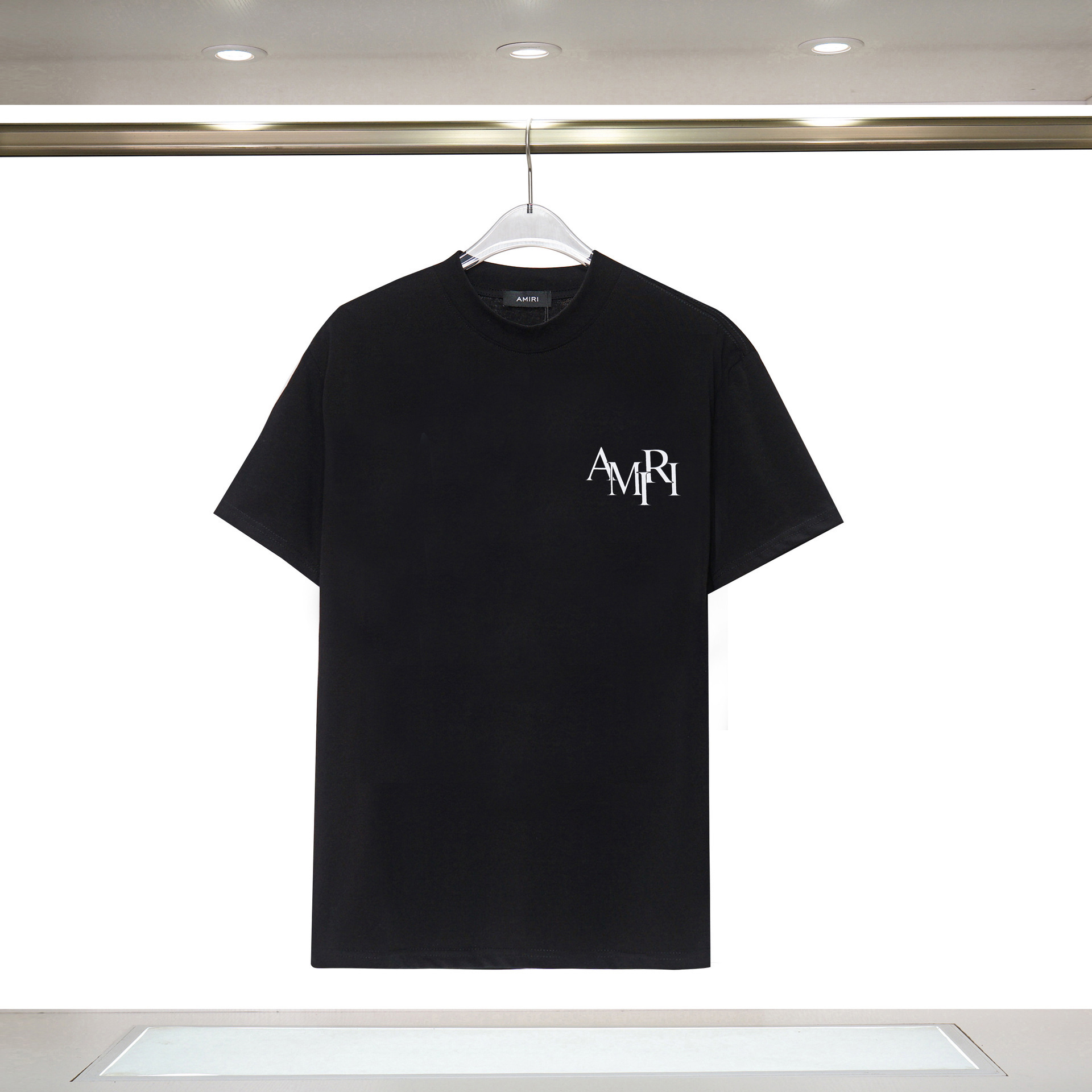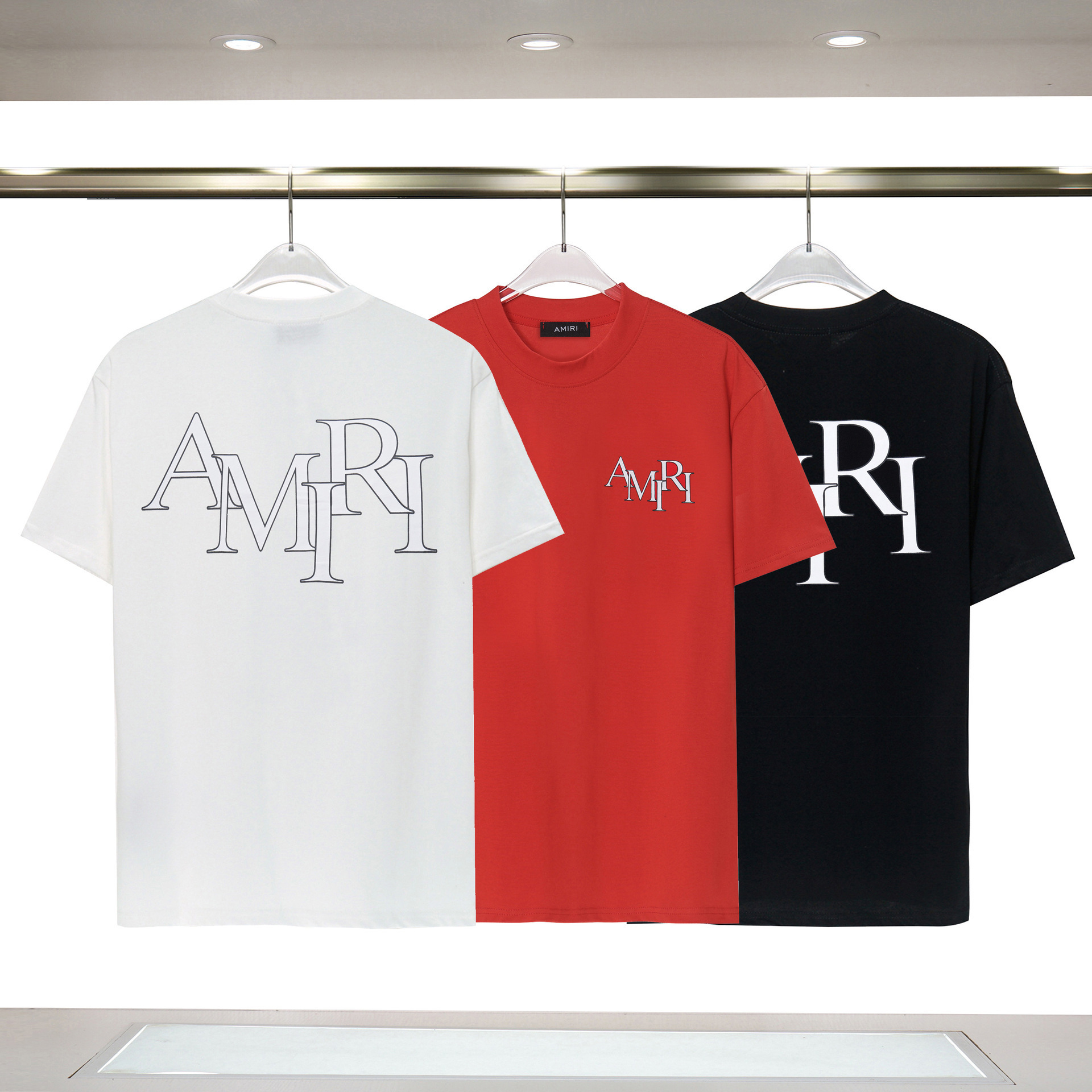 소스 제조업체 Amiri 새로운 클래식 패션 편지 인쇄 라운드 넥 짧은 소매 티셔츠 느슨한 하이 엔드 커플스토어 가기