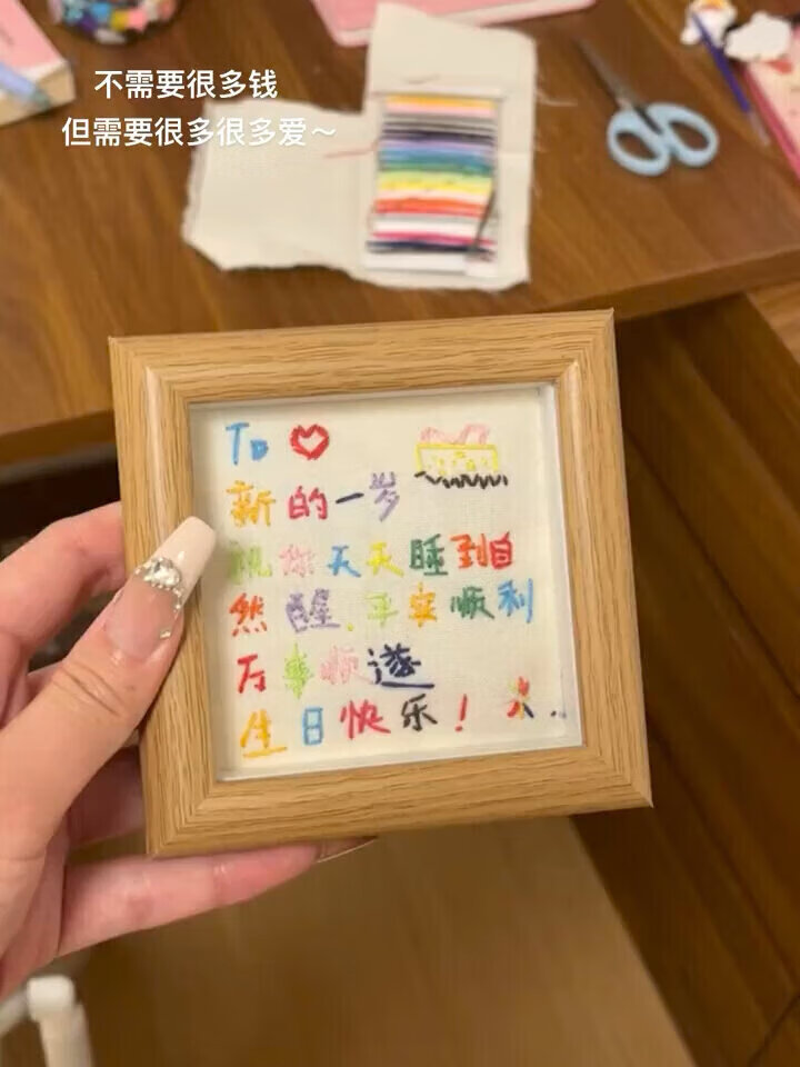 중국 발렌타인 데이 커플 diy 자수 사진 프레임 도매 테이블 생일 축복 나무 액자 수제 크로스 스티치 선물스토어 가기