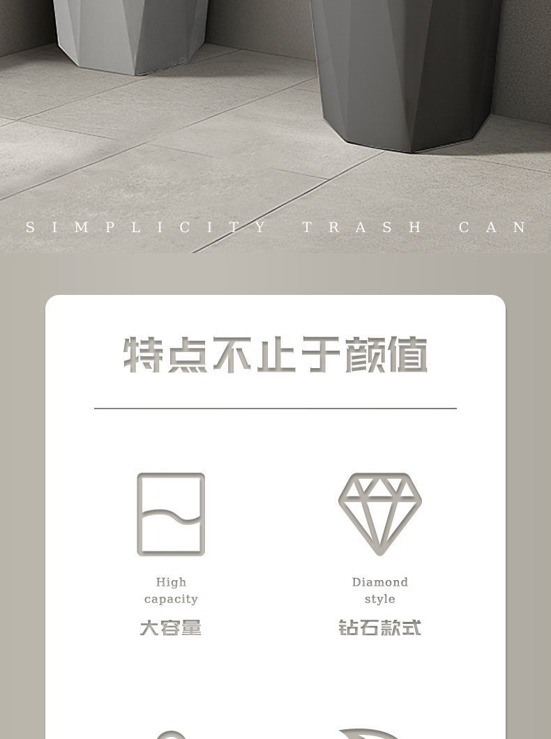 휴지통 학생 기숙사 새로운 스타일 거실 주방 화장실 빛 고급 가정용 쓰레기 대형 다이아몬드 대용량 높은 아름다움스토어 가기