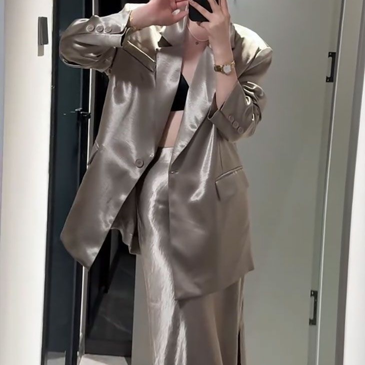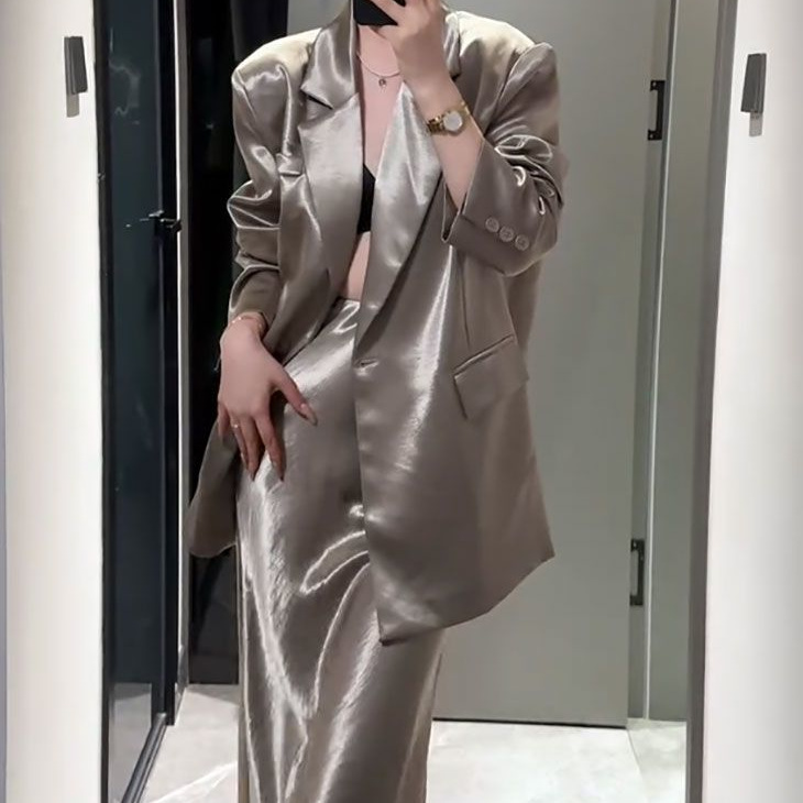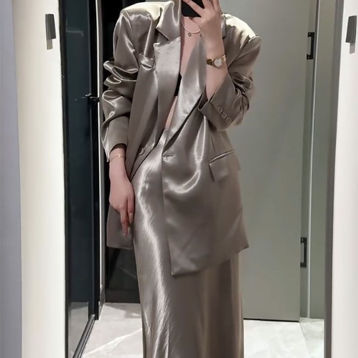 하이 엔드 캐주얼 세트 원피스 캐주얼 중간 길이 세트 재킷 높은 허리 스커트 투피스 세트 봄과 가을스토어 가기