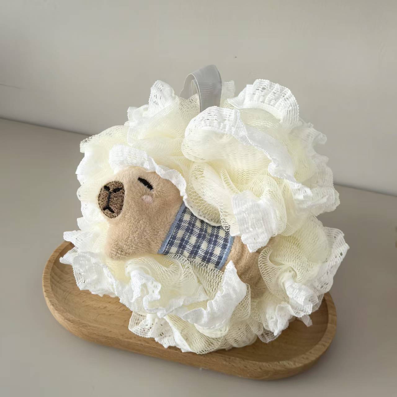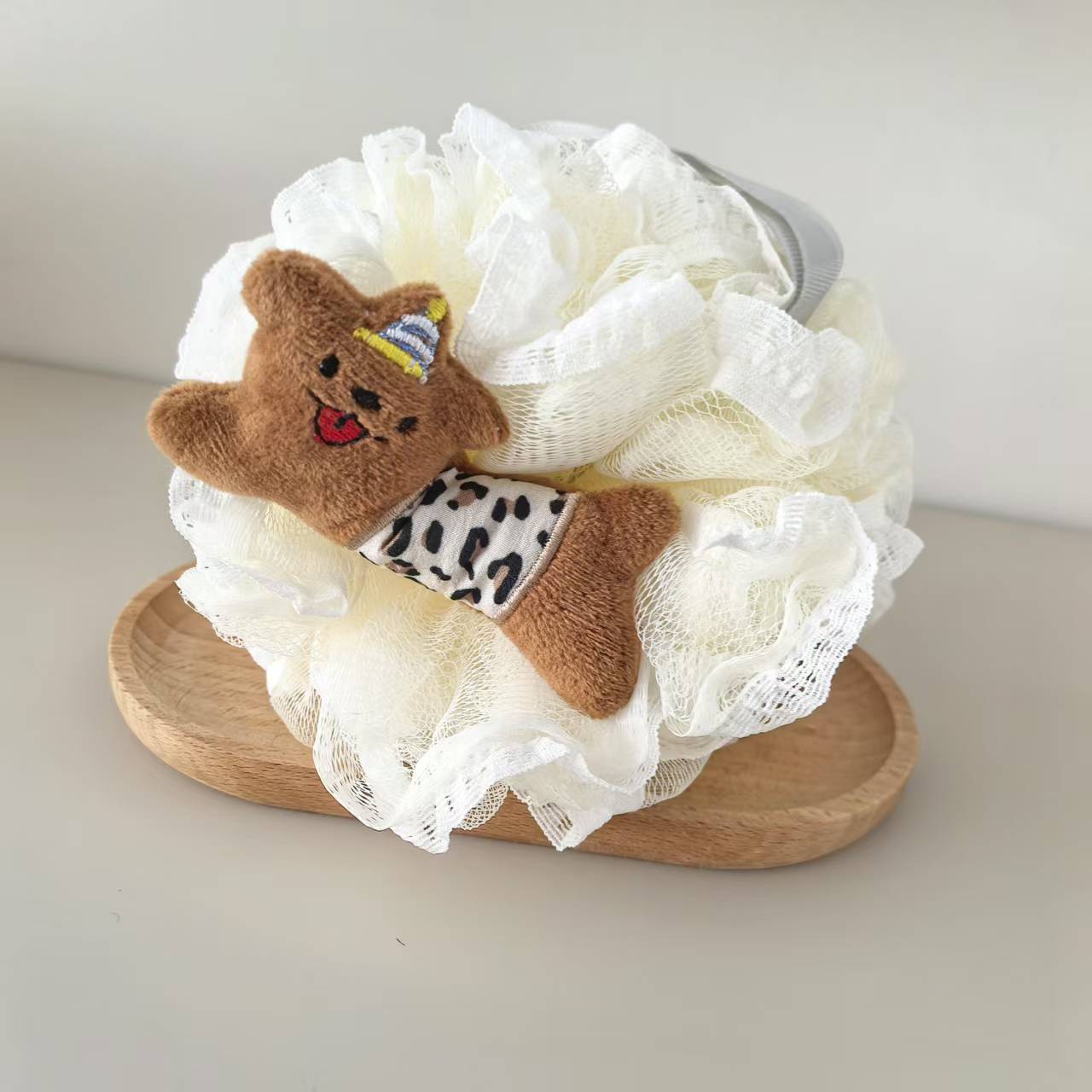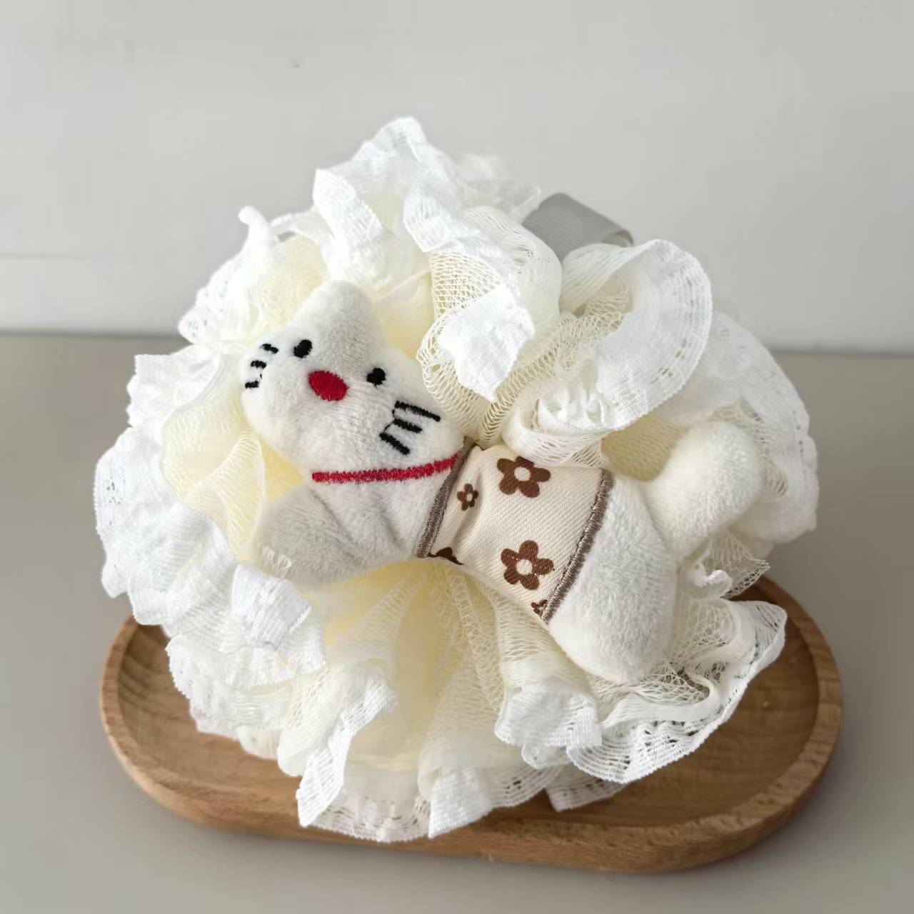 끈으로 부드러운 피부 친화적 인 등 깊은 청소를 문지르는 만화 닥스 훈트 목욕 공 레이스 그물 꽃 목욕 아티팩트스토어 가기