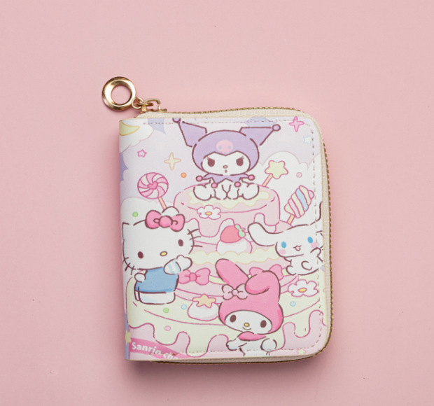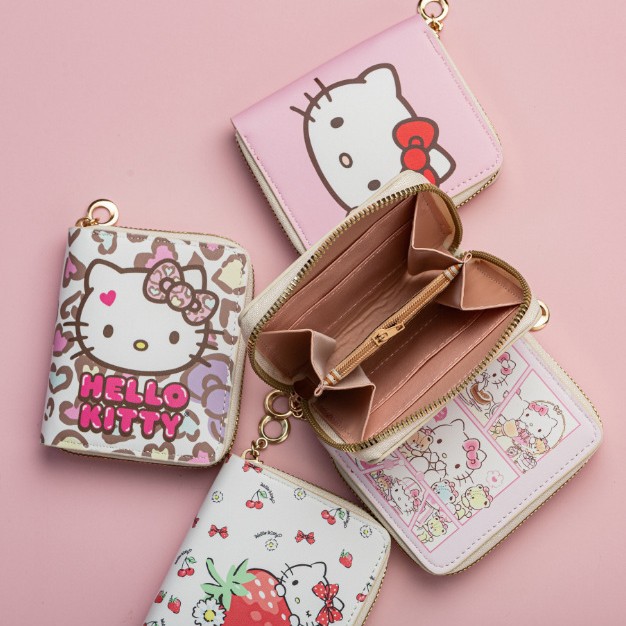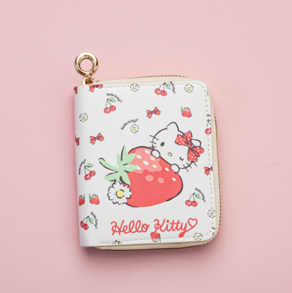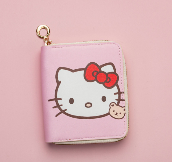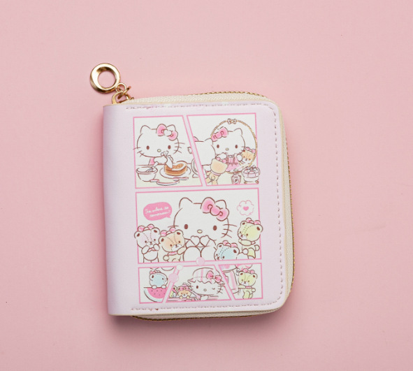 헬로 키티 짧은 여자의 만화 지갑 헬로 키티 귀여운 학생 인쇄 동전 지갑 트렌디 산리오스토어 가기
