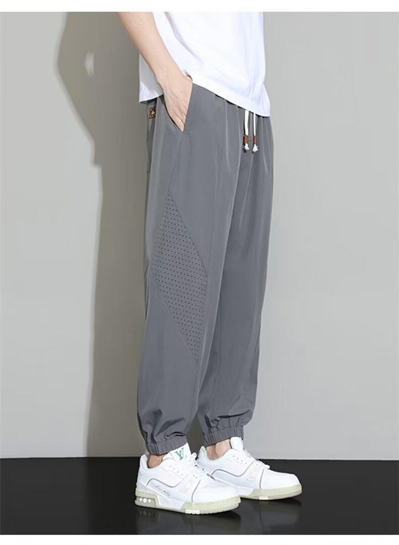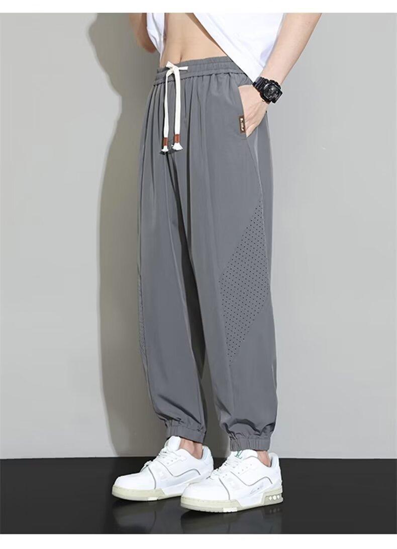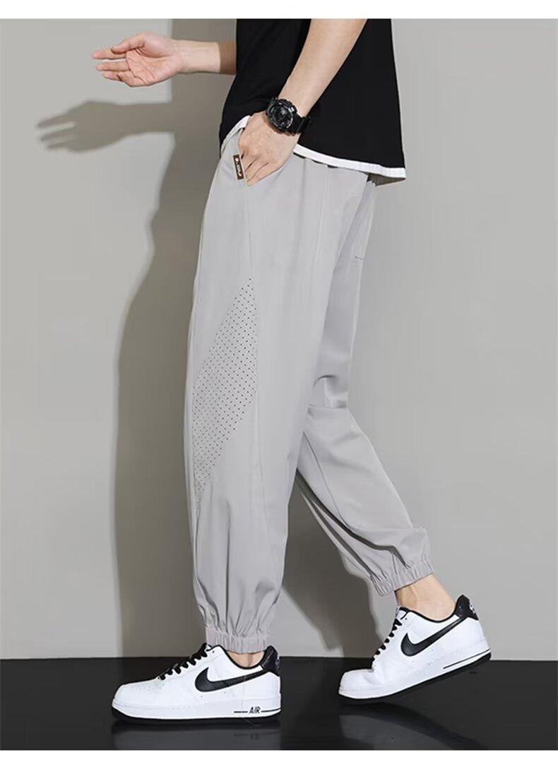 아이스 실크 바지 남자 새 여름 발목 길이 바지 남자 스포츠 바지 빠른 건조 바지 발목 길이 바지 느슨한 캐주얼 바지