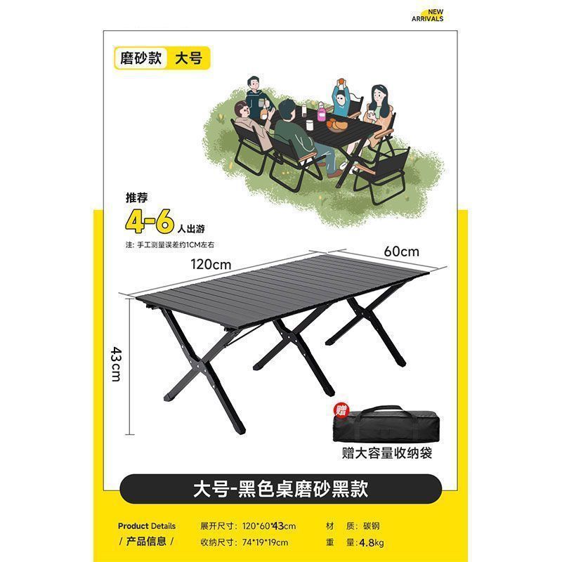 • [항공용 초두꺼운 알루미늄 합금] 122cm 매트 블랙 대형 테이블