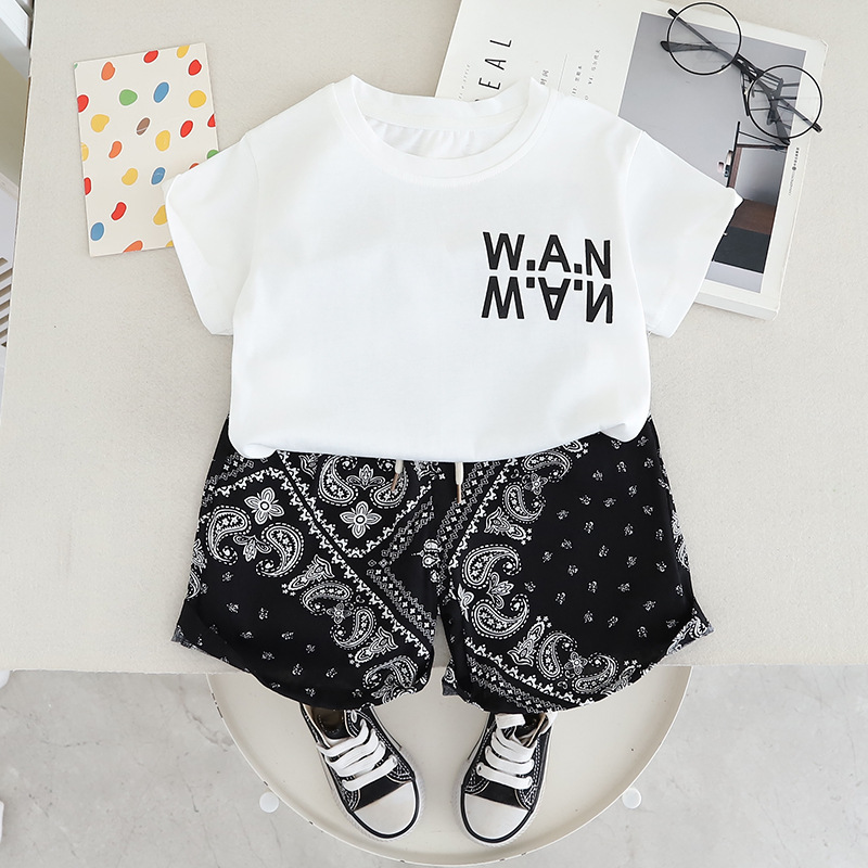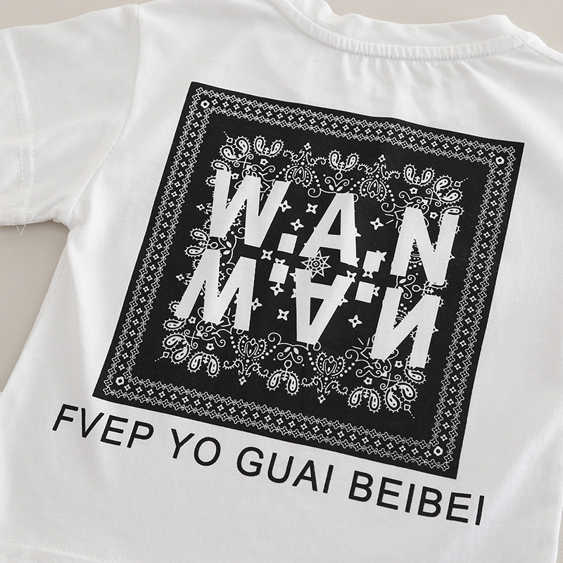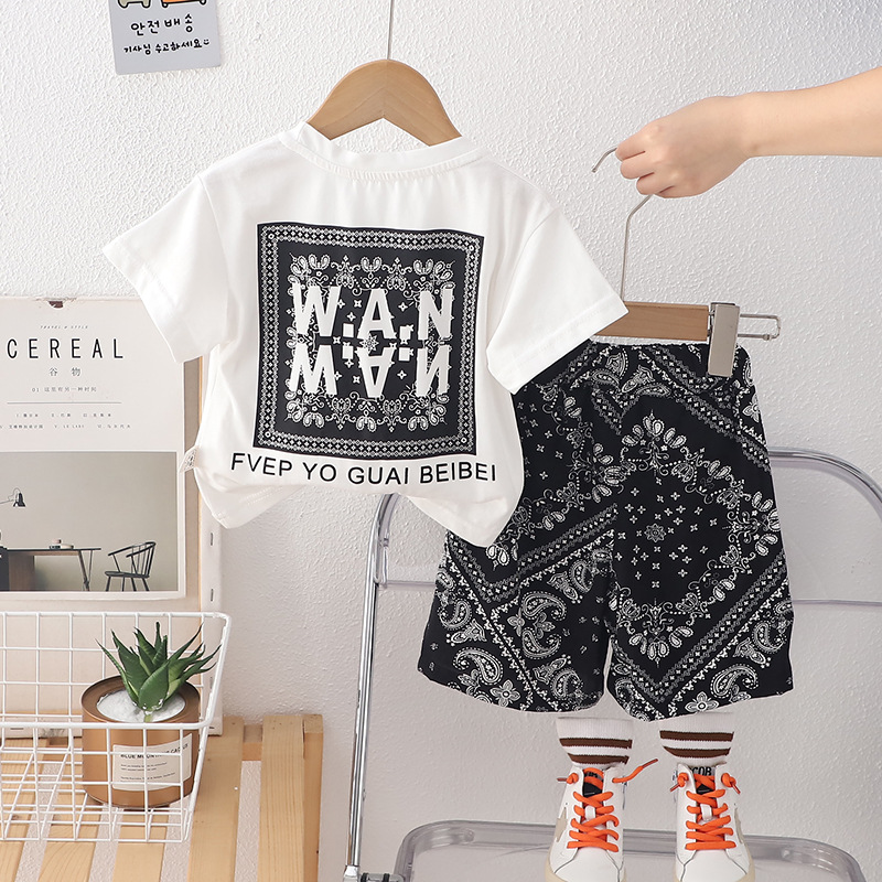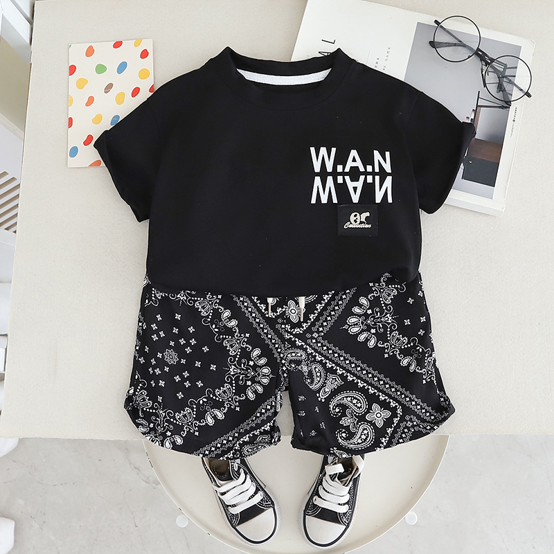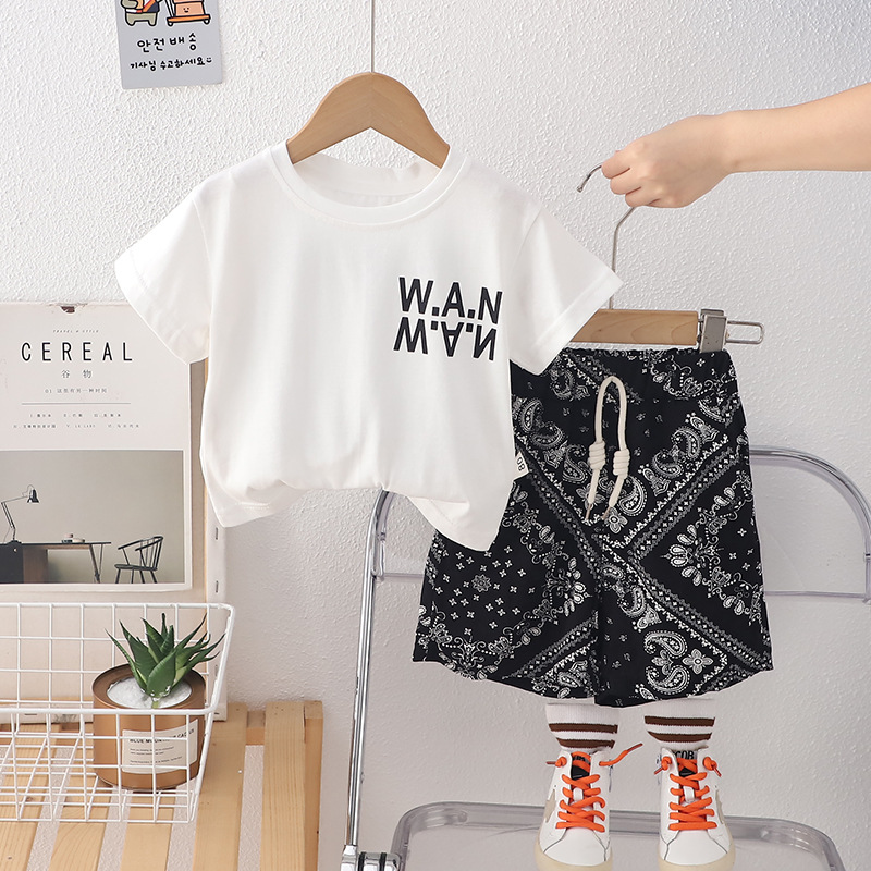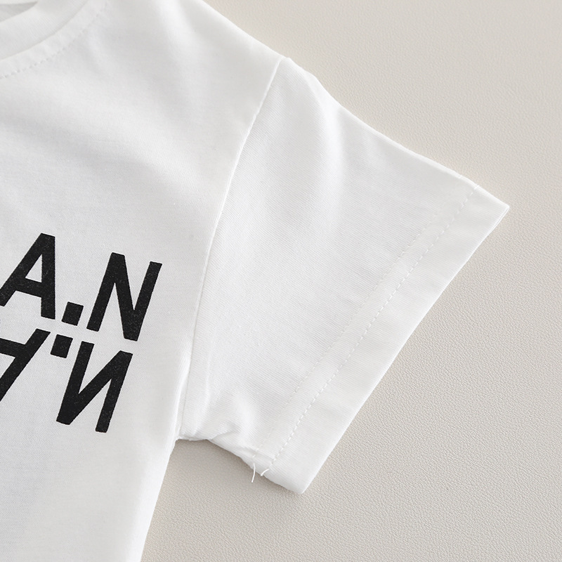 소년 여름 세트 2025 새로운 아기 편지 반팔 캐주얼 티셔츠 1-5 세 아기 여름 투피스 세트