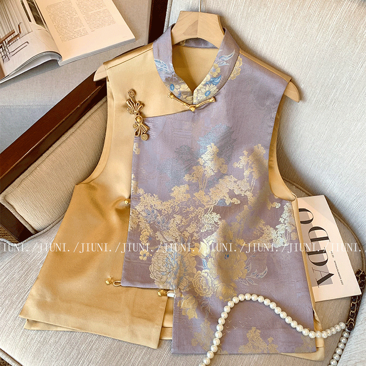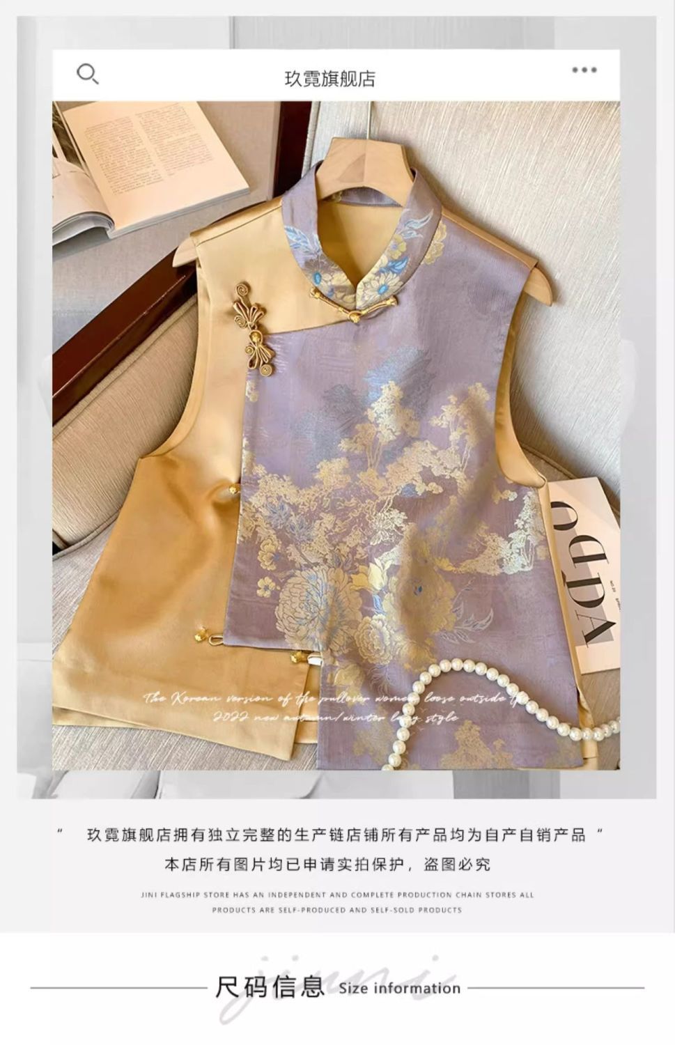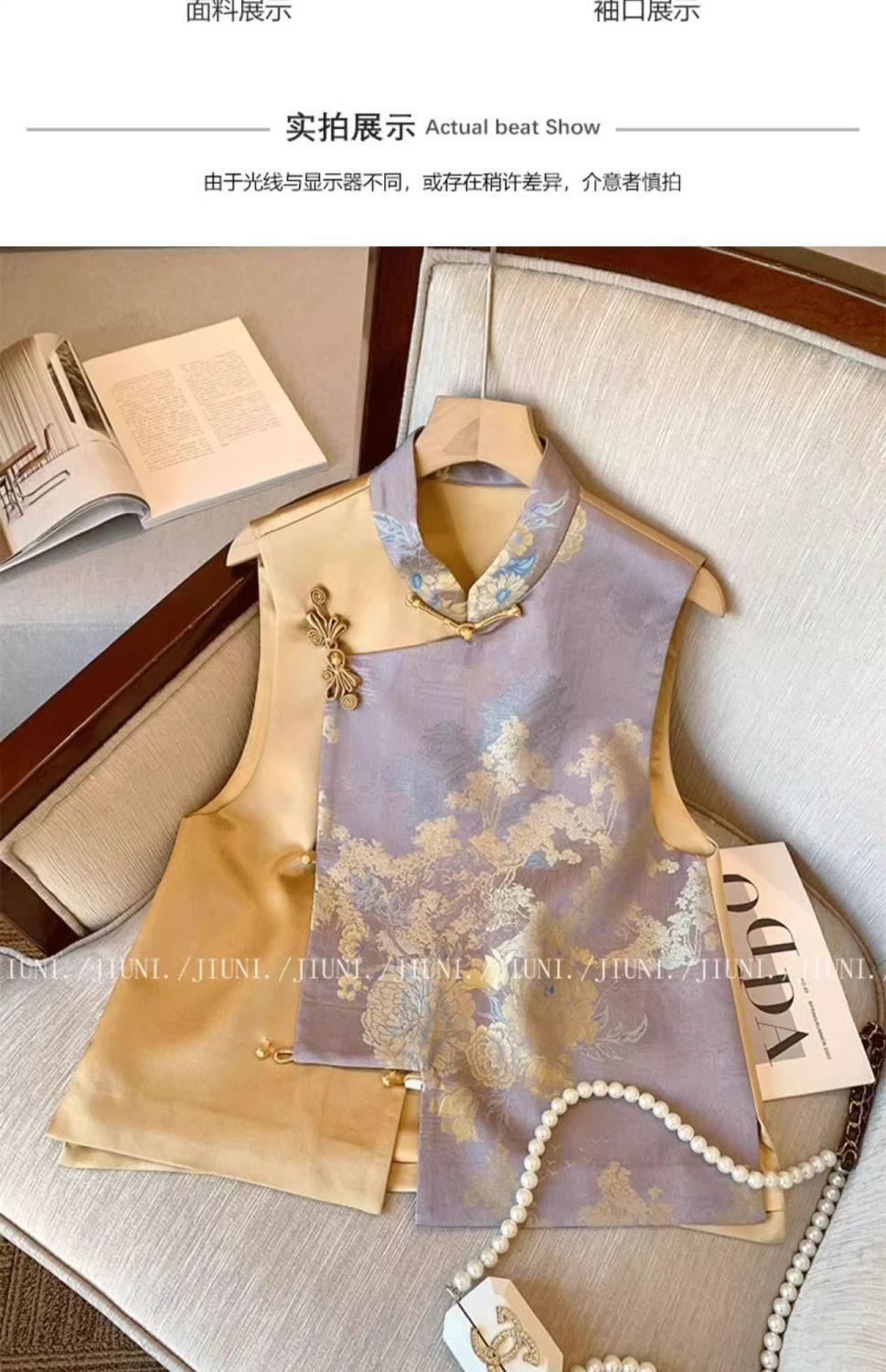 국가 스타일 새로운 중국 스타일 조끼 골동품 스타일 조끼 여성 빈티지 개선 중년 여성의 2025 봄 패션 새로운 탑스토어 가기
