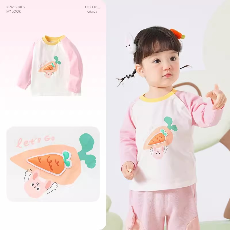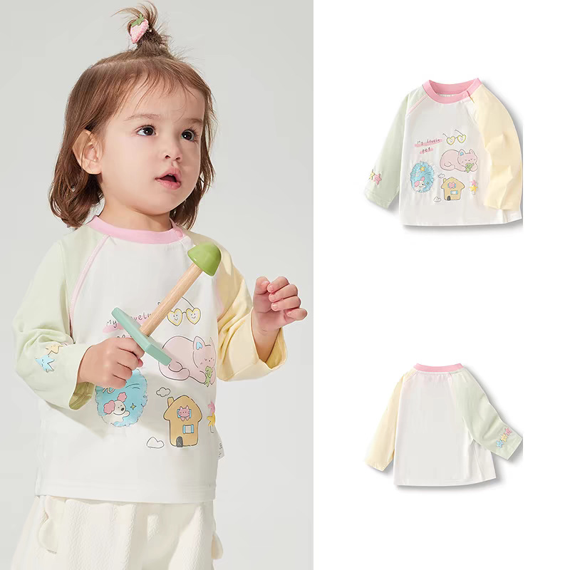 아기의 긴 소매 티셔츠 코튼 아기의 최고 봄과 가을 옷 소년베이스 셔츠 걸스 티셔츠 어깨 버클 서양식 가을 옷스토어 가기