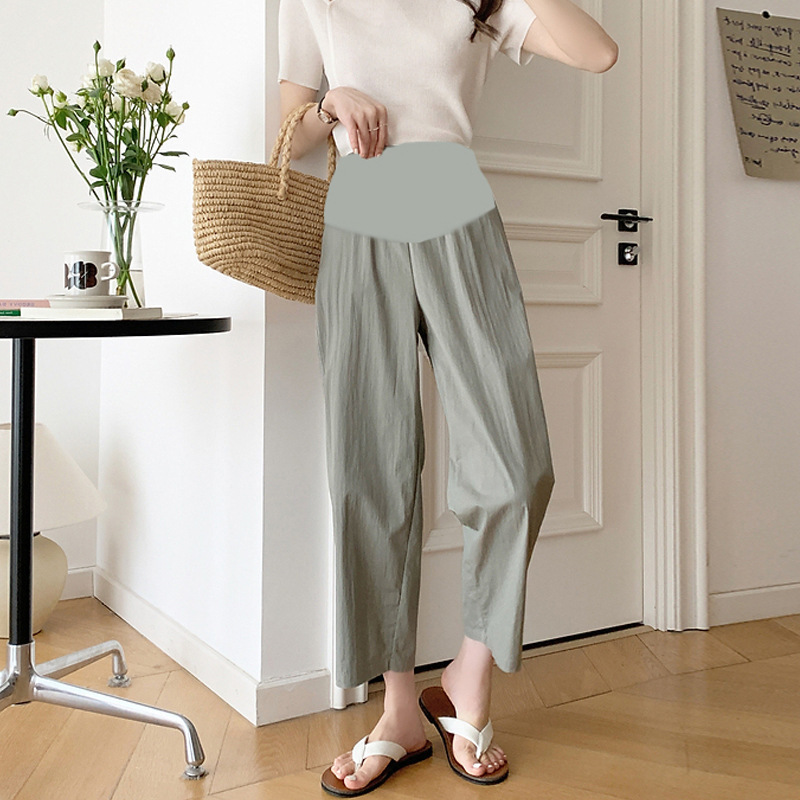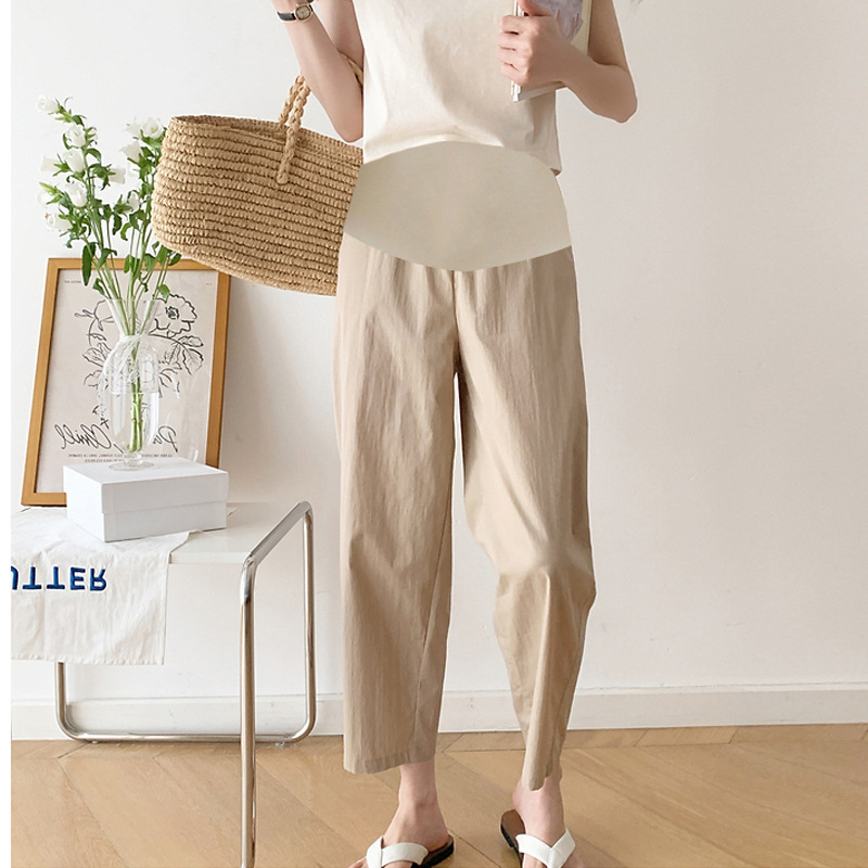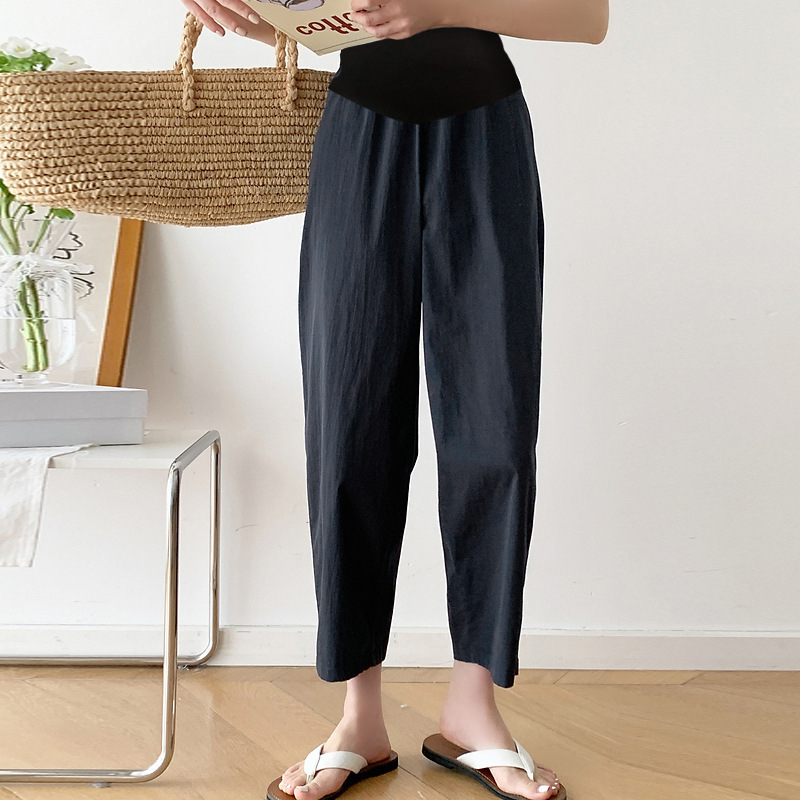 재고 간단한 임산부 바지 2025 봄과 여름 새로운 외부 착용 얇은 면화 및 리넨 바지 직선 다리 바지 할머니 바지