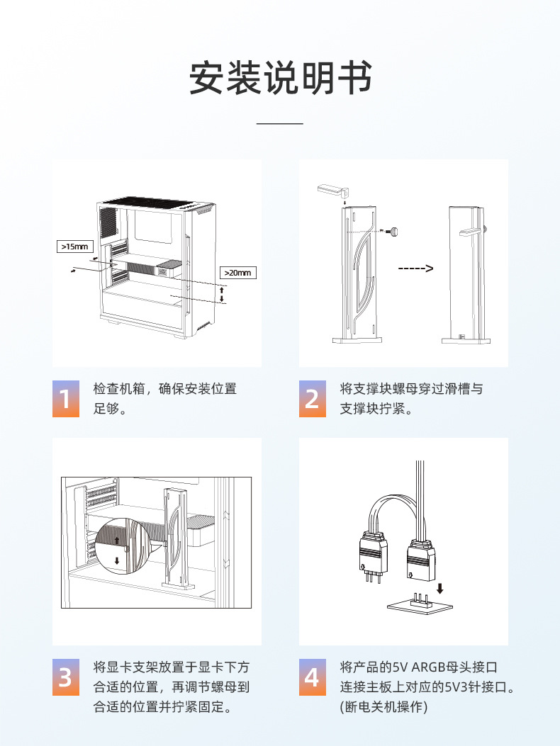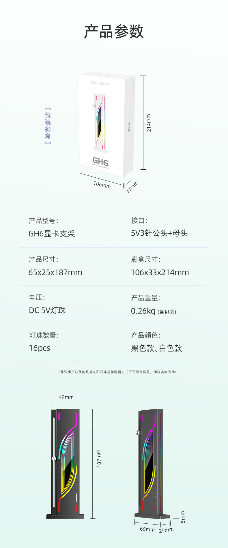 공장 아울렛 쿨 월 GH6 그래픽 카드 브래킷 ARGB 섀시 diy 설치 40/50 시리즈 그래픽 카드 보호 브래킷