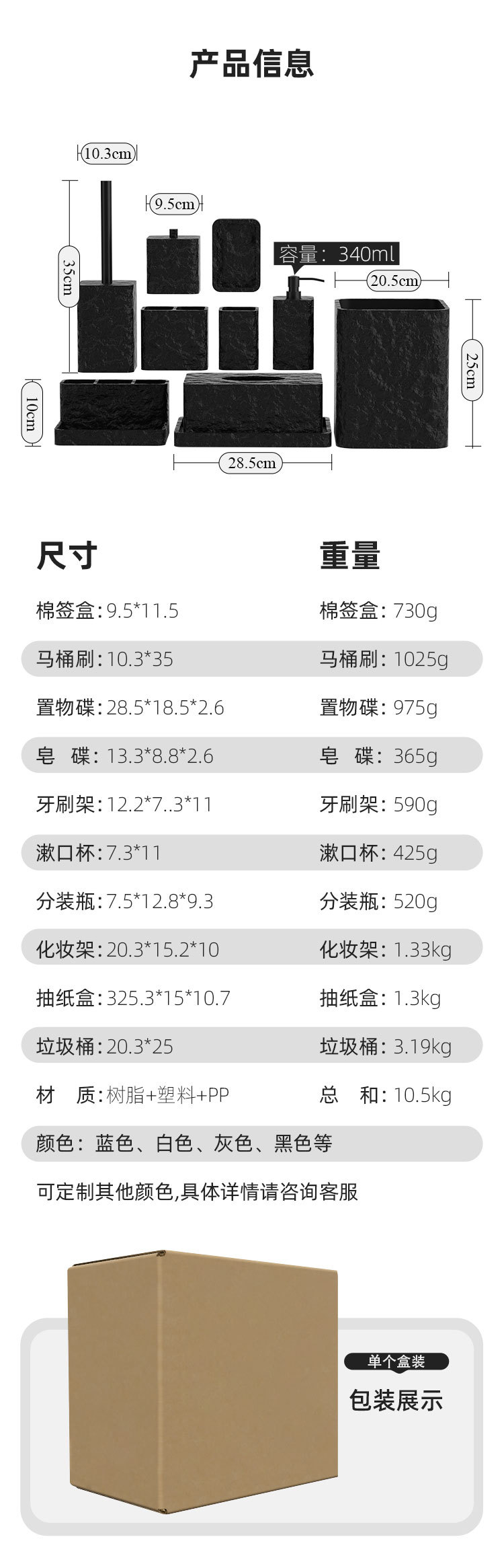 욕실용 레진 10종 세트 유럽풍 심플 세면도구 세트 칫솔컵 욕실 장식품스토어 가기