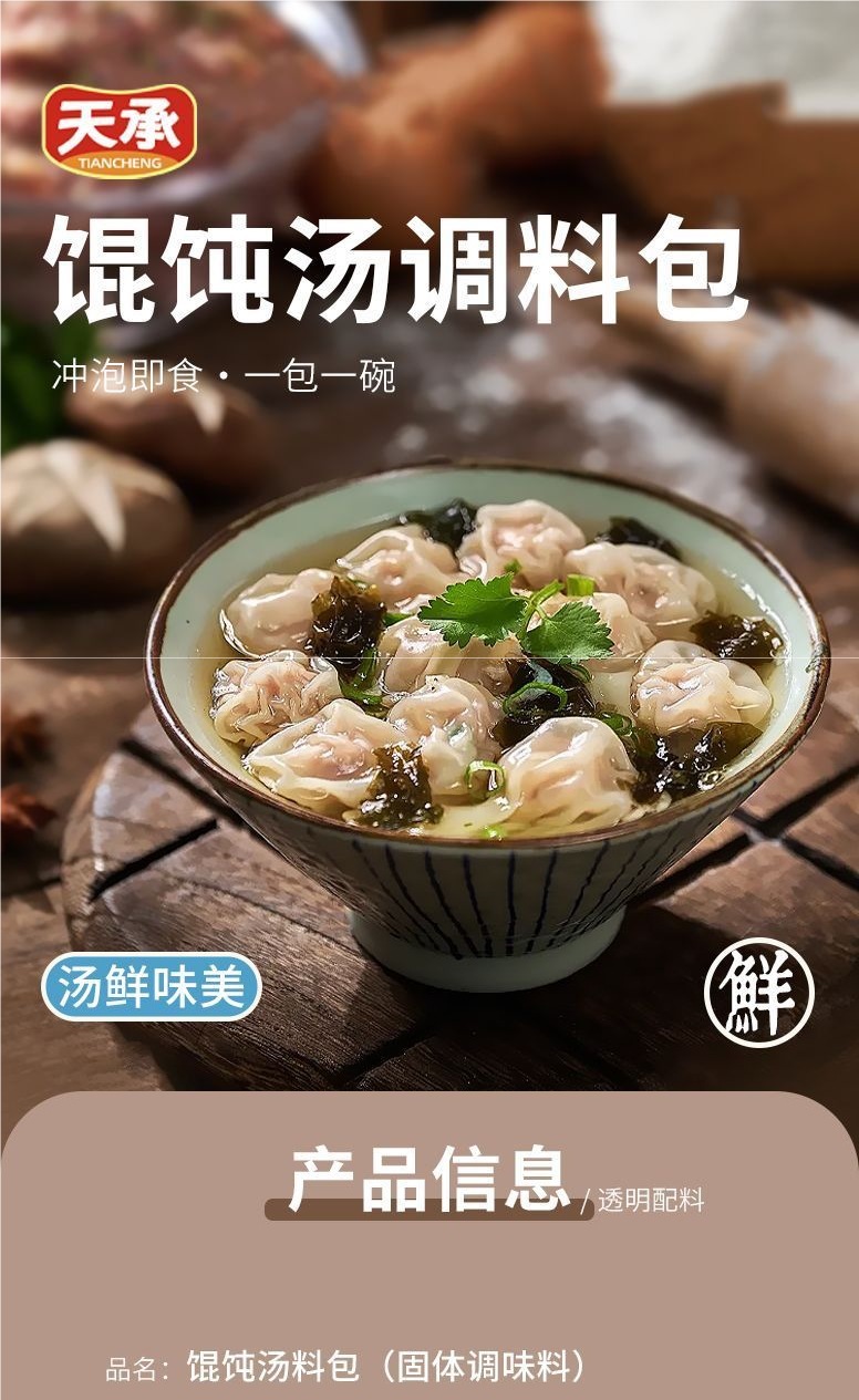 Tiancheng Wonton 수프 가방 천 Lixiang Wonton 조미료 인스턴트 인스턴트 소형 패키지 새우 스킨 원톤 혼돈
