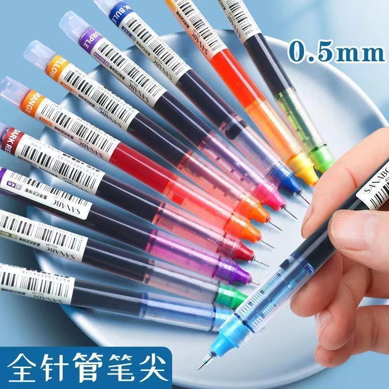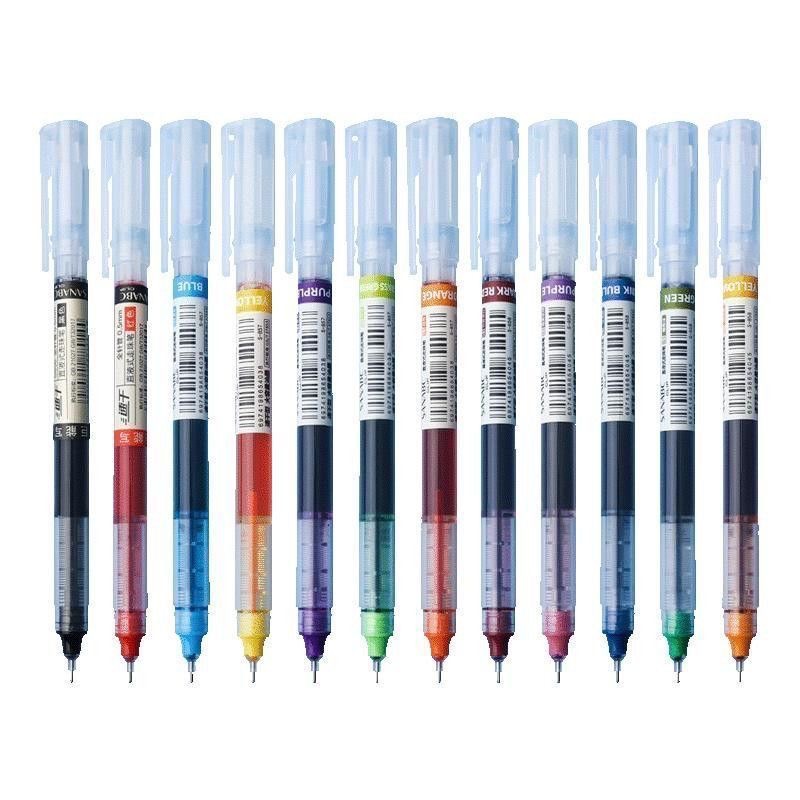 12 색 직접 액체 공 펜 젤 펜 0.5mm 대용량 귀여운 멀티 컬러 빠른 건조 직접 액체 펜