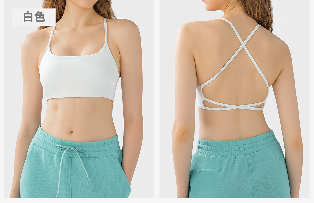 여성을위한 국경 간 섹시한 아름다운 뒤 스포츠 브라 스파게티 스트랩 고강도 충격 방지 푸시 업 요가 피트니스 브라 DW399스토어 가기