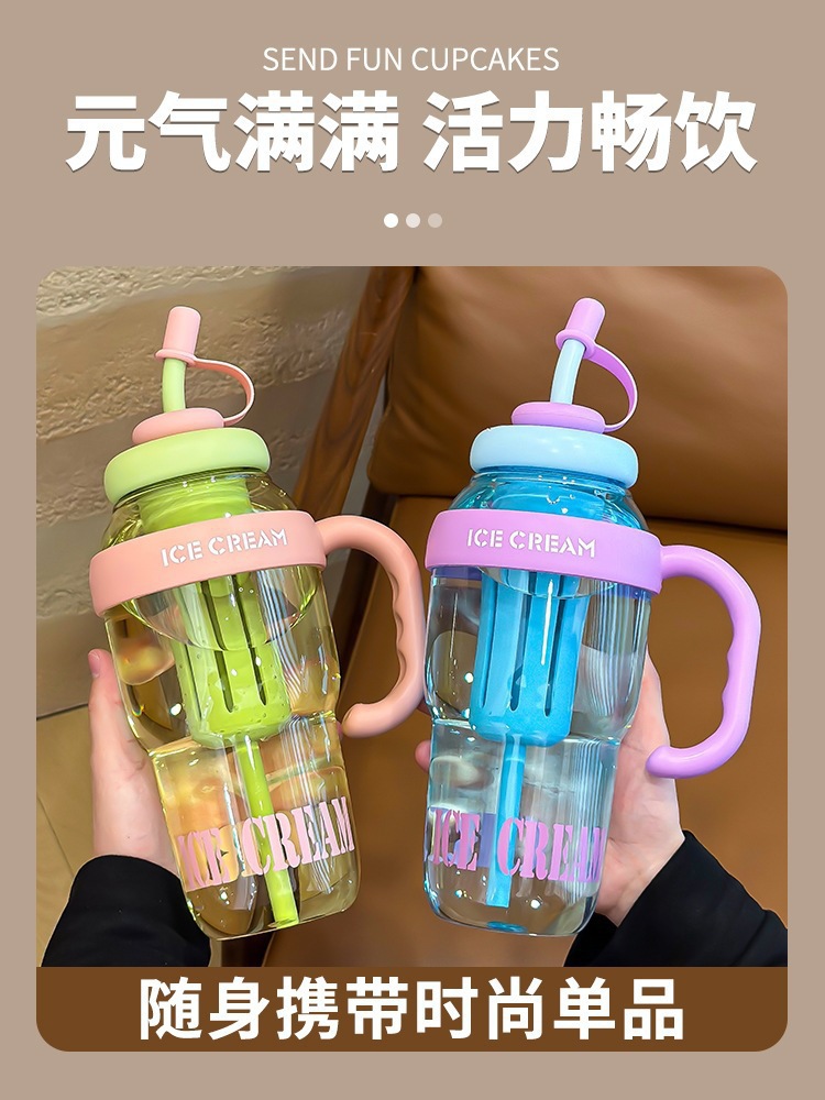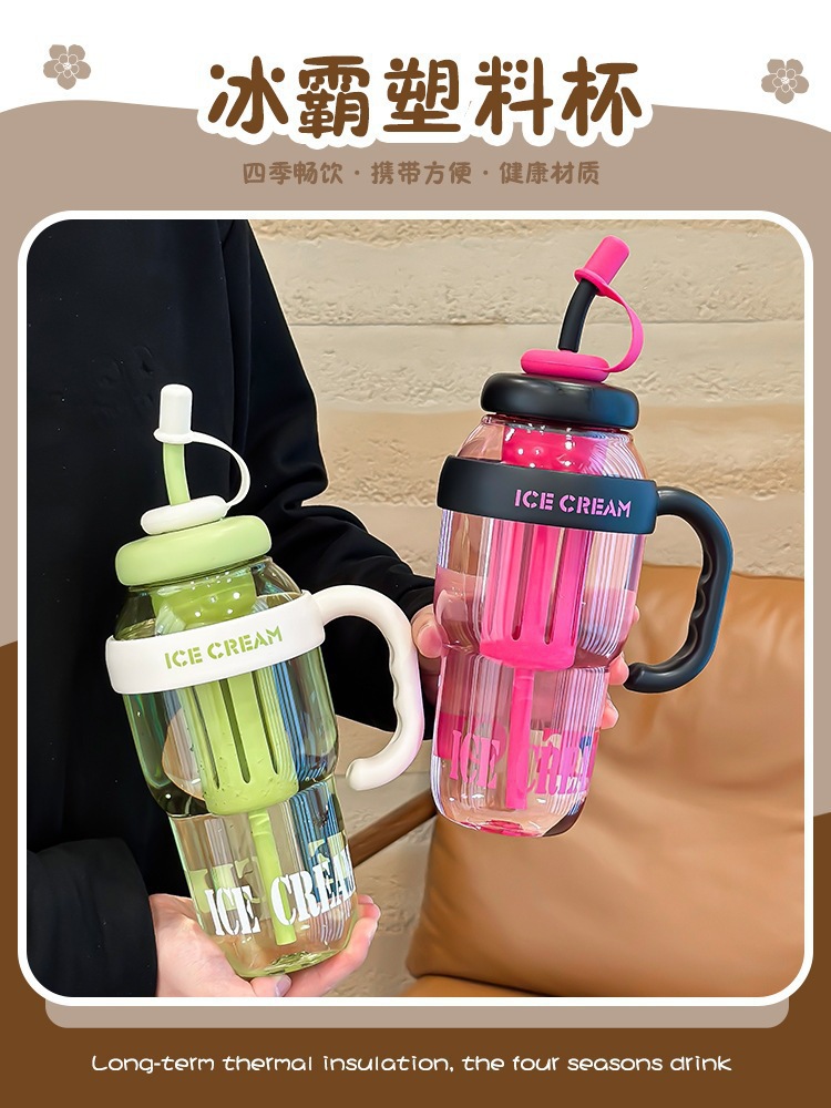 인터넷 연예인 배꼽 컵, 고급스러운 대용량 손잡이 컵, 여름 얼음 컵, 플라스틱 빨대 컵, 2025 새로운 스타일