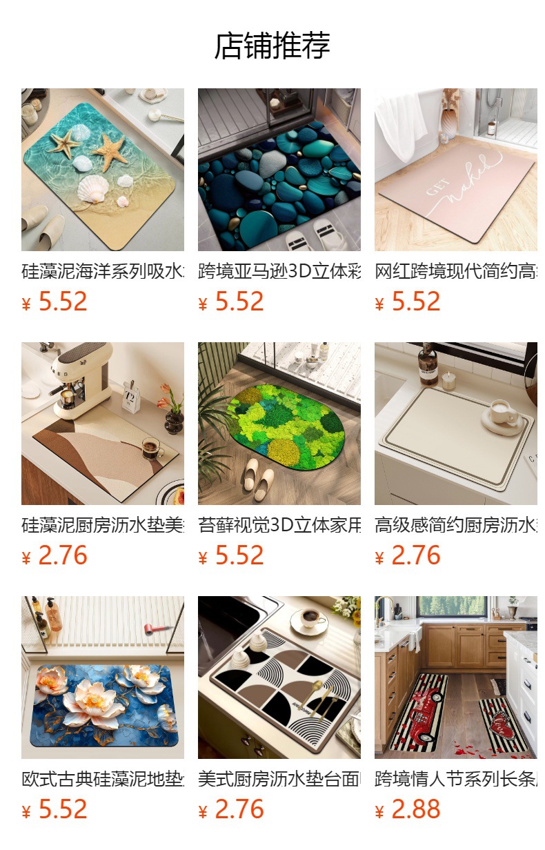 국경 간 큰 꽃 규조 진흙 매트 욕실 매트 미끄럼 방지 쉬운 관리 매트 더티 저항 화장실 흡수 매트스토어 가기