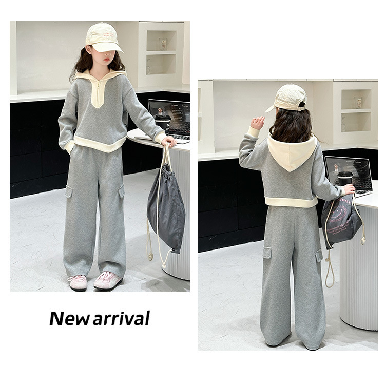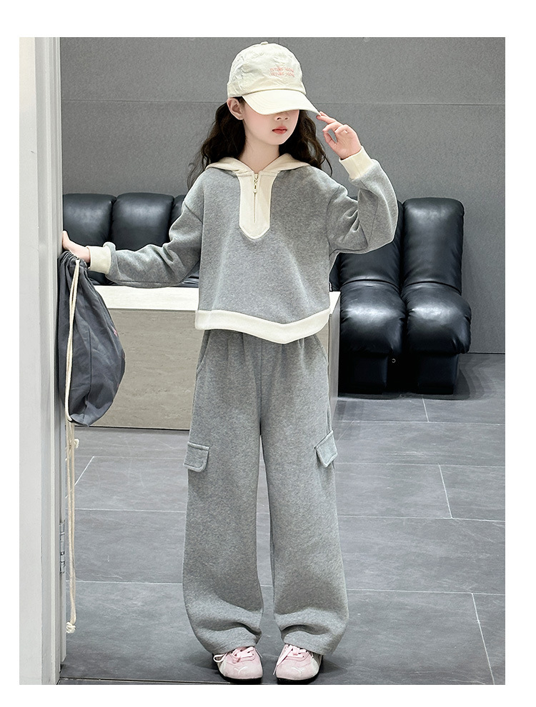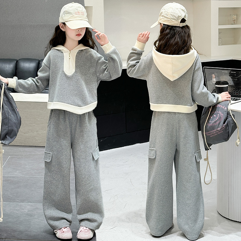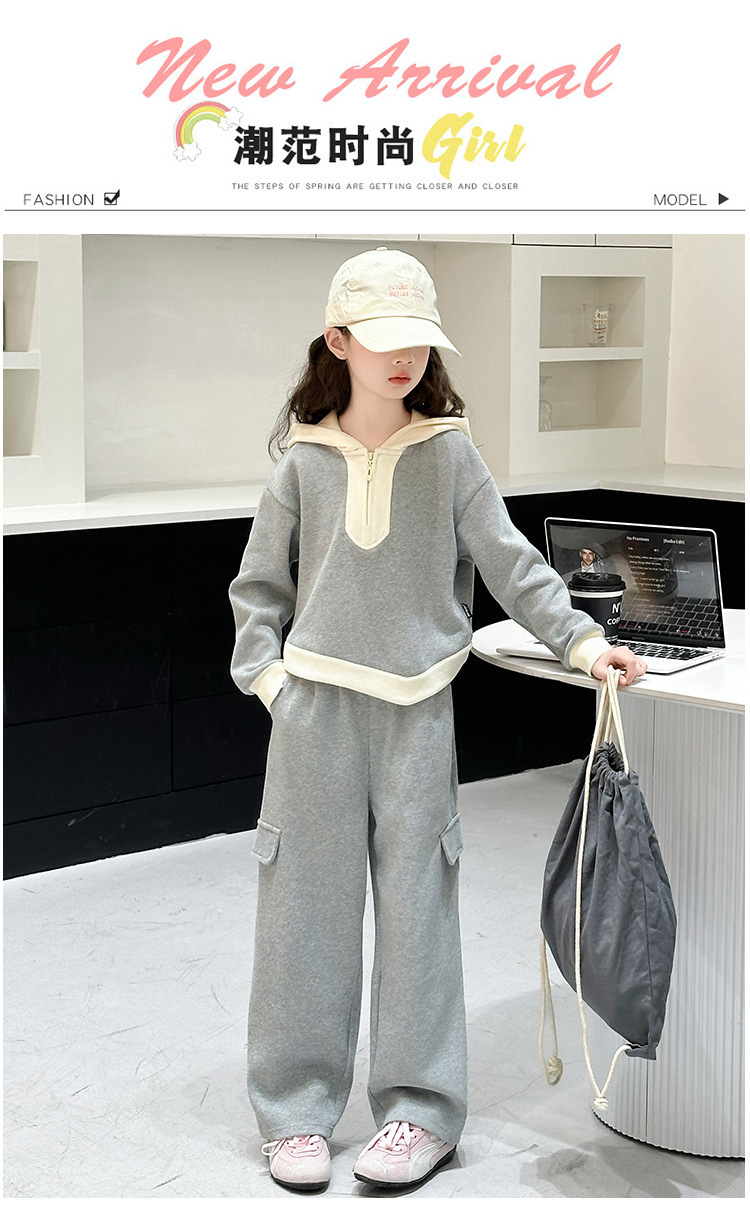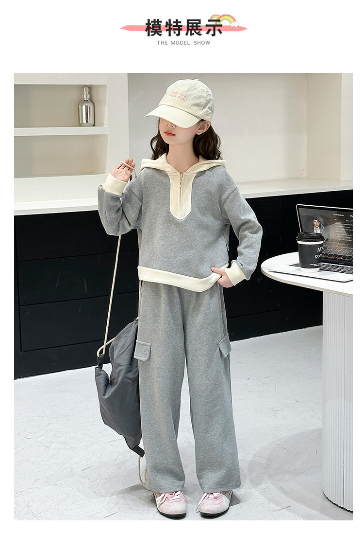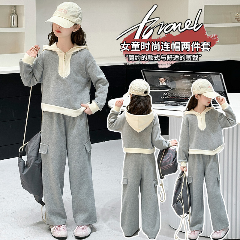 560 여아 봄 스포츠 투피스 세트 2025 새로운 봄, 가을 어린이 대형 아동용 대비 색상 후드 티셔츠 세트스토어 가기