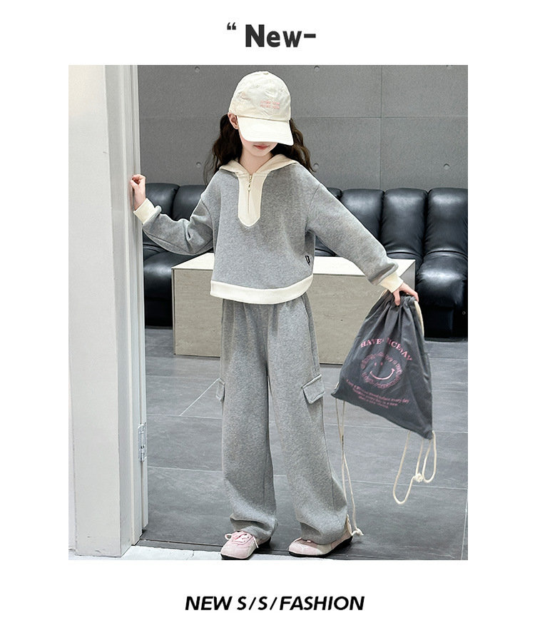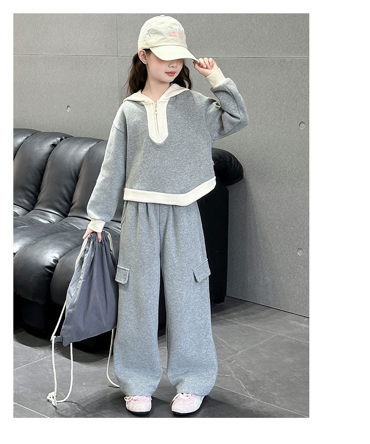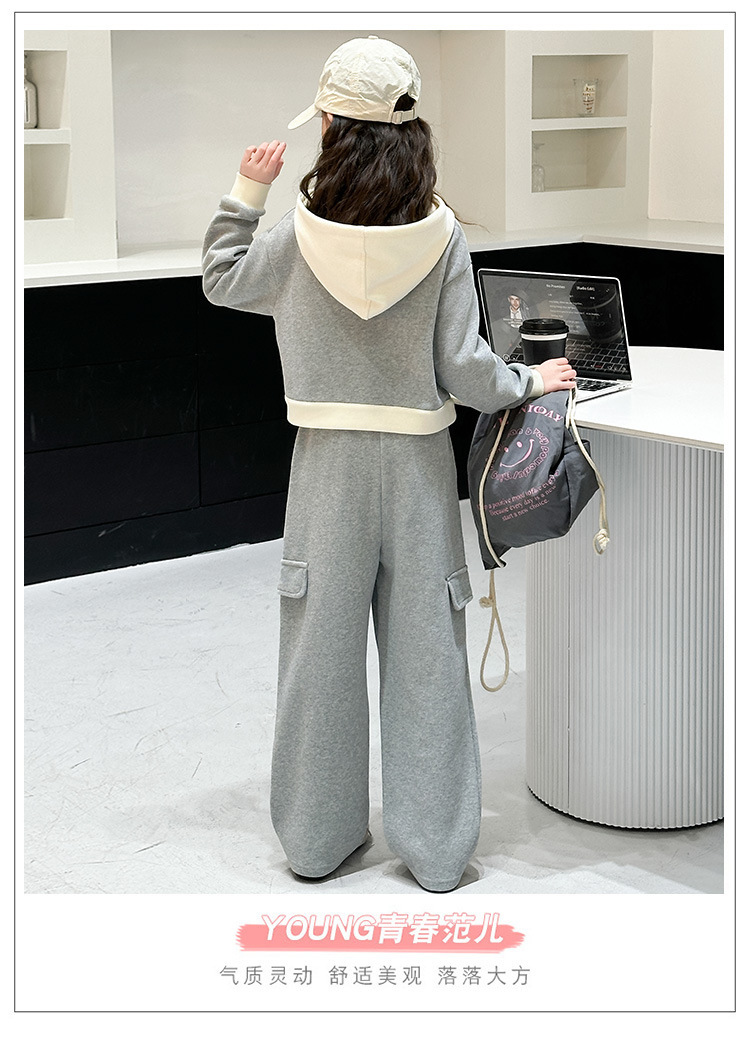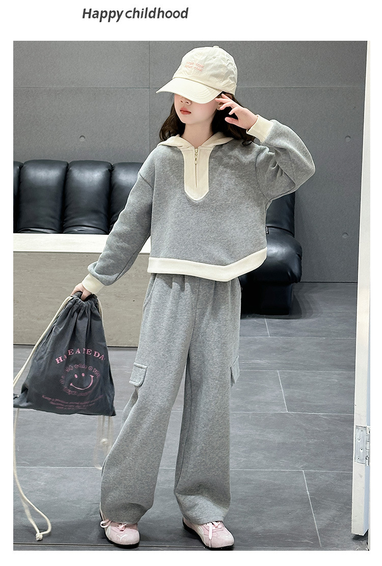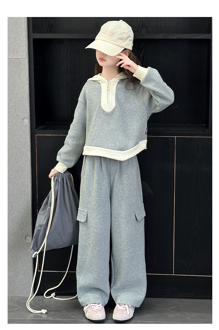 560 여아 봄 스포츠 투피스 세트 2025 새로운 봄, 가을 어린이 대형 아동용 대비 색상 후드 티셔츠 세트스토어 가기