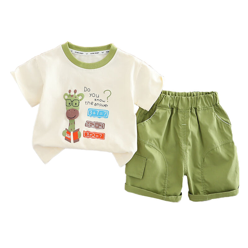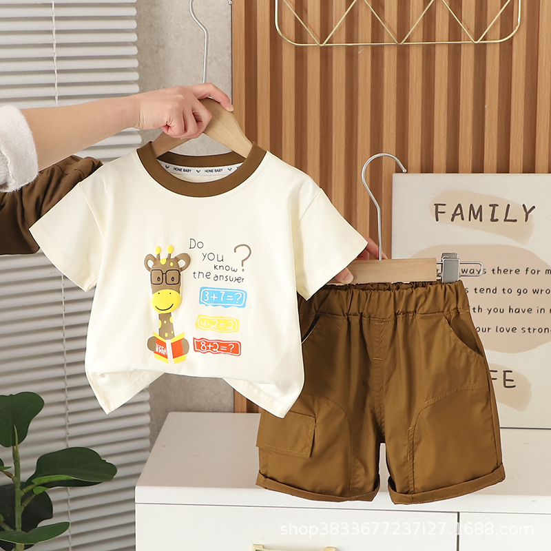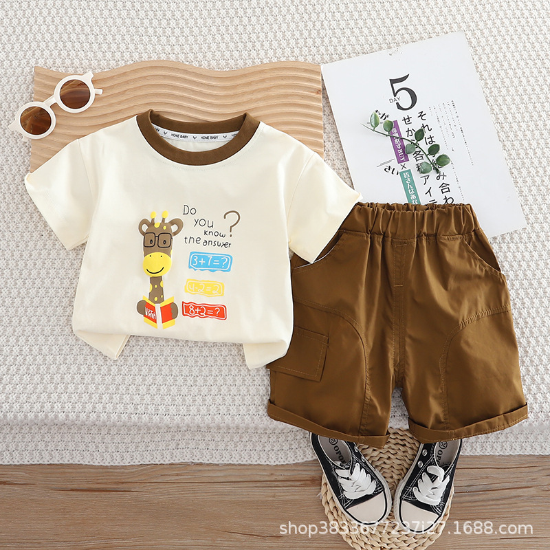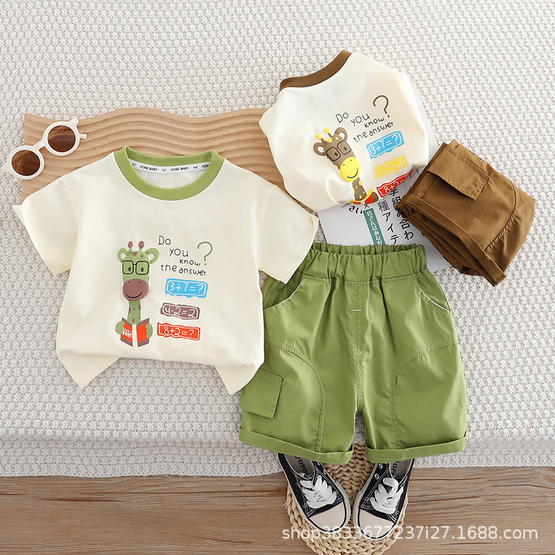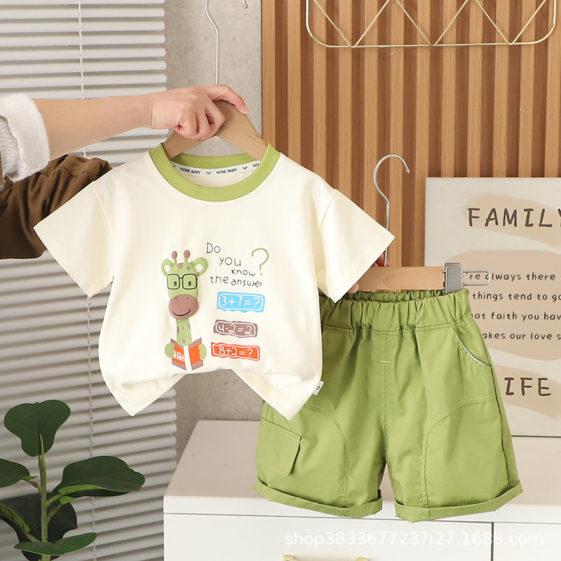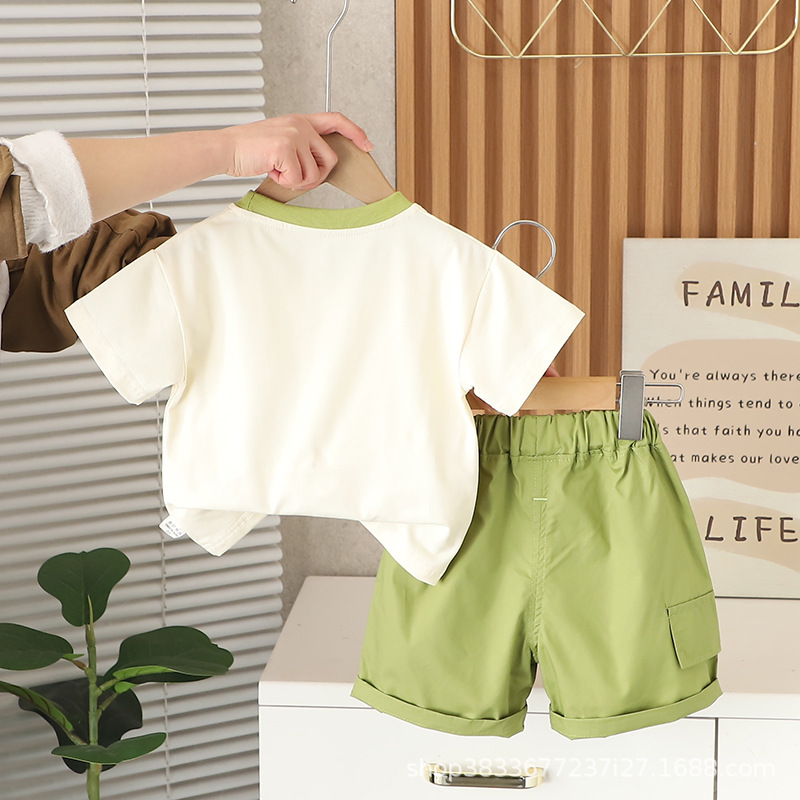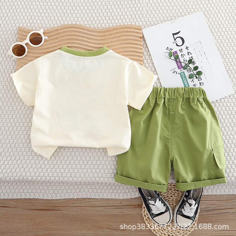 아기 여름 새 소년 여름 만화 둥근 목 짧은 소매 두 조각 어린이 얇은 캐주얼 옷 도매스토어 가기