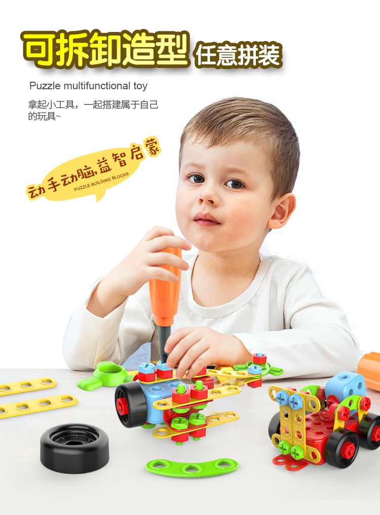 맞춤형 어린이 나사 장난감 전기 드릴 도구 상자 소년 교육 빌딩 블록 너트 조립 장난감 Amazon 3+스토어 가기