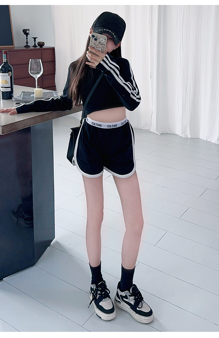소녀 스포츠 세트 봄과 가을 2025 새로운 스타일 소녀 한국 스타일 봄 패션 긴 소매 상단과 반바지 착용스토어 가기